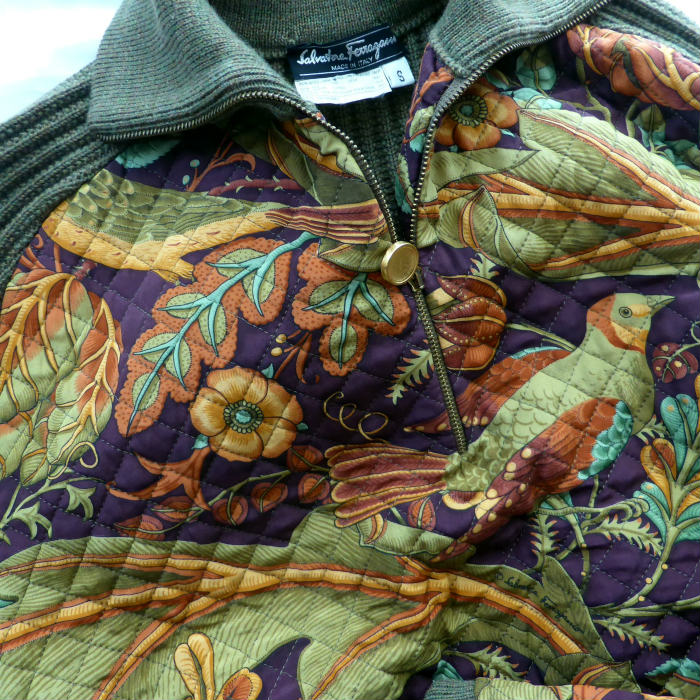 | サルヴァトーレフェラガモィのウールニット。 ミドルゲージの畦ニットに総柄のシルク製キルティングをドッキングした逸品。 程よく短丈のレトロな柄は他にないデザインです。 ハーフジップ仕様の為、レイヤードでもお楽しみいただけます。 |