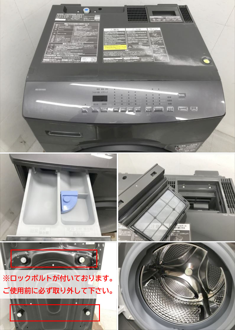 【商品特長】 ◆アイリスオーヤマ独自の「ファイブセンシング」でしっかり乾燥 5つのセンサーを組み合わせた乾燥検知方式を搭載。 センサーによる温風温度・庫内温度・吸気温度・衣類量・運転時間の管理で衣類をしっかり乾かします。 ◆ふんわりシワ取り(80%乾燥) シワのないふんわりした仕上がりを実現します。 ※ご注意※ この洗濯乾燥機には運送事故を防ぐ為のロックボルトが付いております。 異常振動の原因となりますので設置前に必ず外してください。 (ロックボルトを外さずにご使用頂いた場合の故障につきましては対応できかねますのでご注意下さい。) R-1の洗濯機をお買い上げのお客様に!業務用洗濯槽クリーナー1回分をおまけでお付けします! 業務用ならではの洗浄力をお試しください!洗濯槽クリーナーのみでも販売してます♪ | |||||||||||||||||||||||||||||||||||