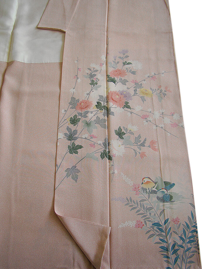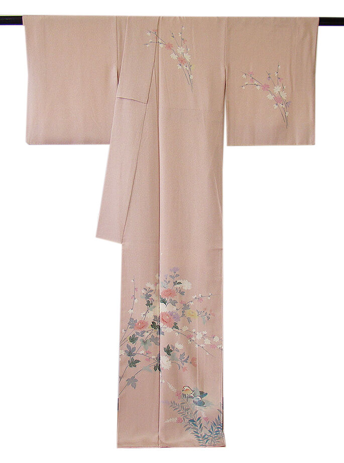 | 商品説明 | こちらのお品は「袷」ですので10月から5月までお召頂ければと思います。 とてもしなやかで柔らかな手触りの着心地良い重めの上質な極上一越地の生地、 淡い灰桜色地にたたき染に花草、水鳥柄等の本加工染、 気品に満ち溢れた彩りが正統派のお着物として一枚は欲しい逸品の素敵なお着物です。 八掛は共布に柄入り(正絹)、幅広い年代の方にお召頂けます。 |