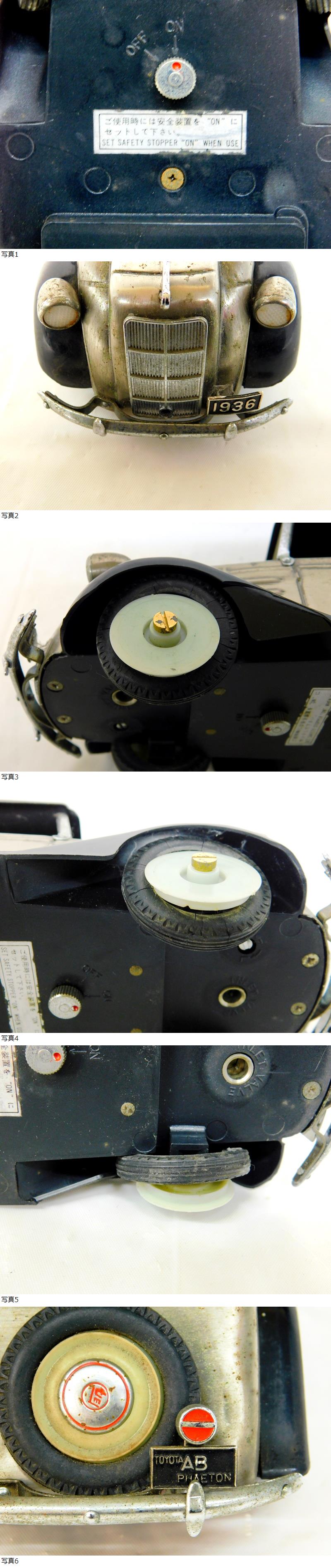 ★トヨタAB型フェートン乗用車 ミニチュアカー ★卓上ライター ★長さ約25cm 幅約8cm 重さ495g ★裏側にバッテリーを入れるようなところがあります。バッテリーのようなものはありません。蓋ありません。元々あったのか不明です。 ★ハンドルを押すと、カチッと音がしますが着火はしませんでした。ガスが入っていないためか不明です。 ★屋根の部分の開閉ができます。