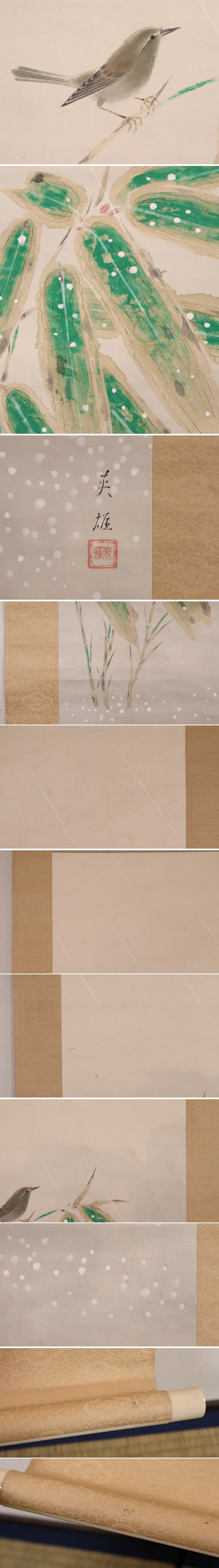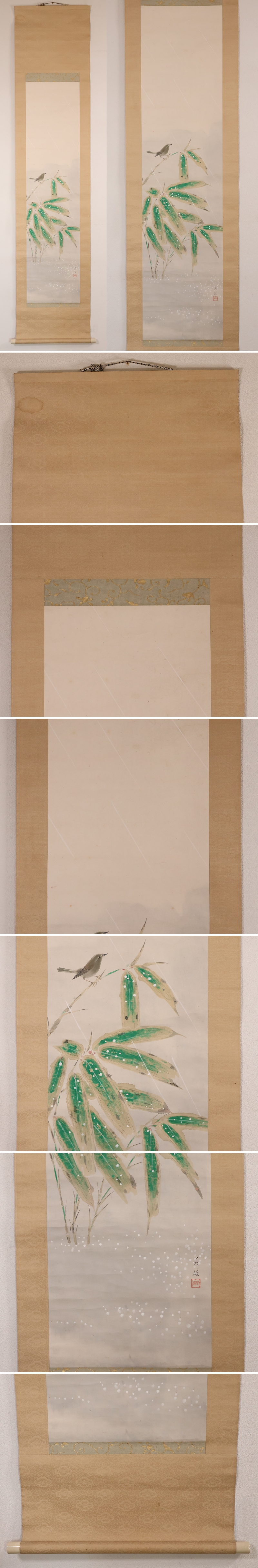 ◇【模写】日本画 西山英雄 鴬に笹図 紙本 掛軸 合箱 彩色 鳥 竹 京都出身 MB255◇
