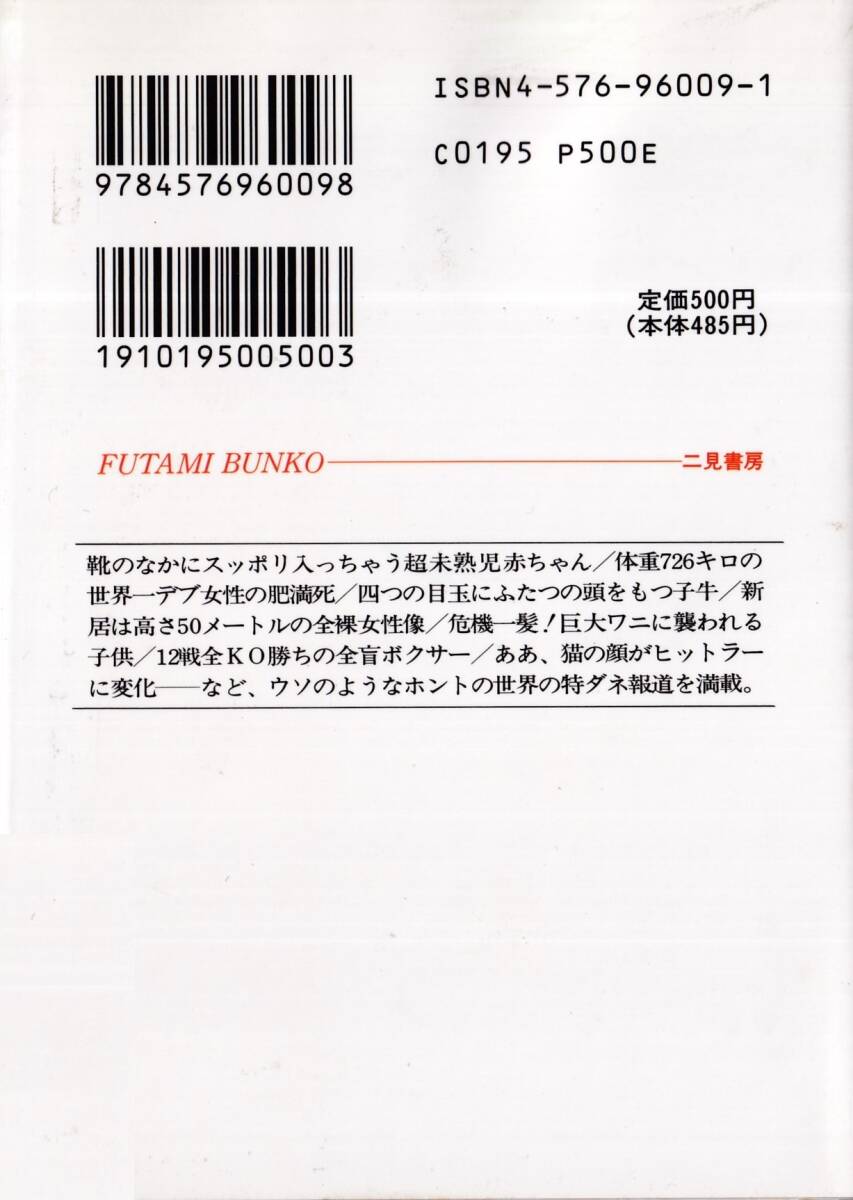 世界おもしろドッキリ写真ニュース 海外特報道研究会編 二見文庫1996年2月 初版、295ページ、500円。個人新規購入品、当時物。