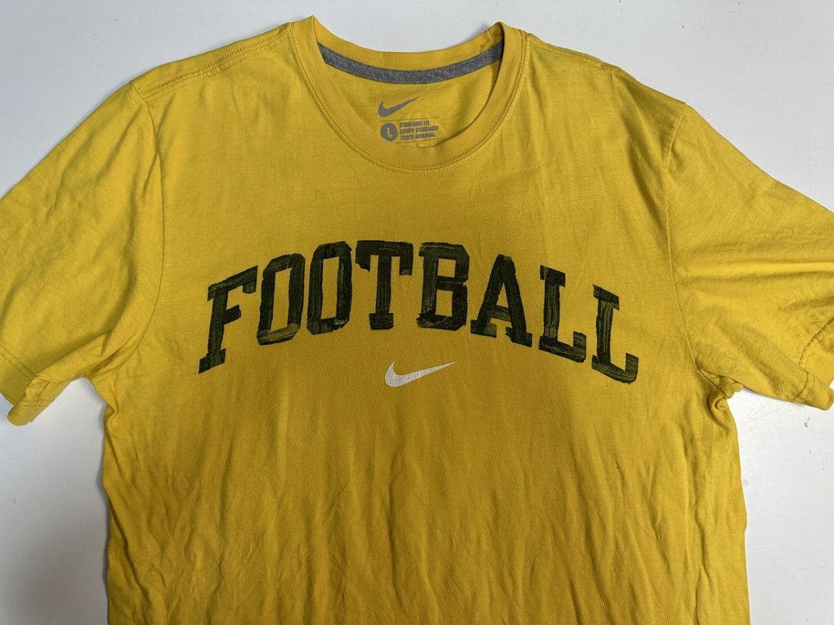 ●US USED NIKE ナイキ Tシャツ 文字マジック調プリント 手書き風プリント デザイン 半袖 イエロー黄【L】コットン