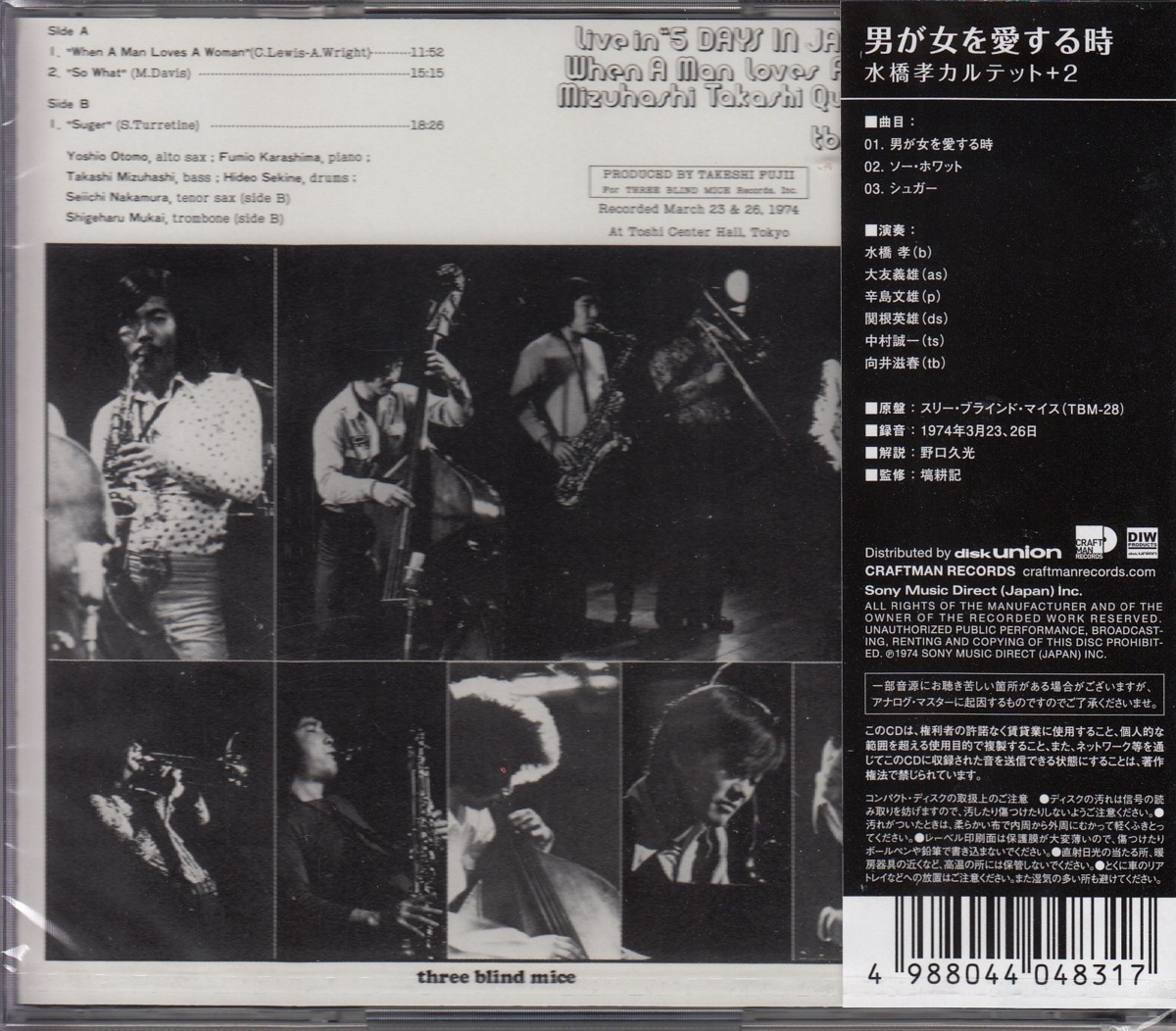 | 水橋孝カルテット + 2/男が女を愛する時 CMRS-0059(原盤TBM-28) 新品未開封CDです |
