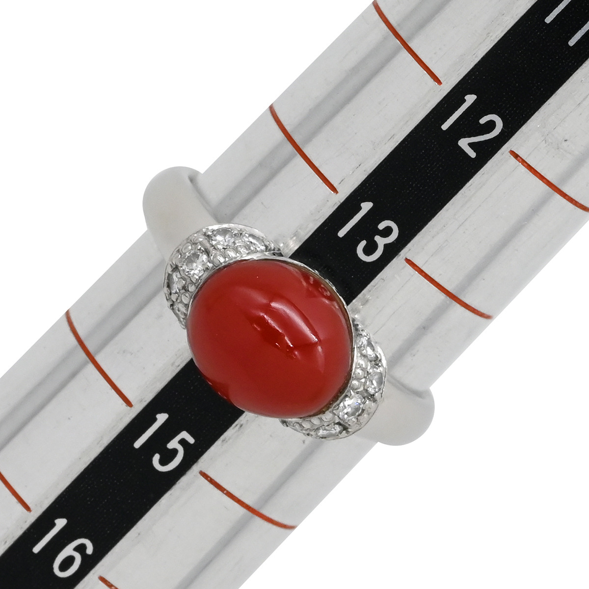 | ノンブランド NON BRAND リング 指輪 Pt900 珊瑚 ダイヤモンド プラチナシルバー赤 サンゴ 14号 レディース定番 人気 美品 中古 | |