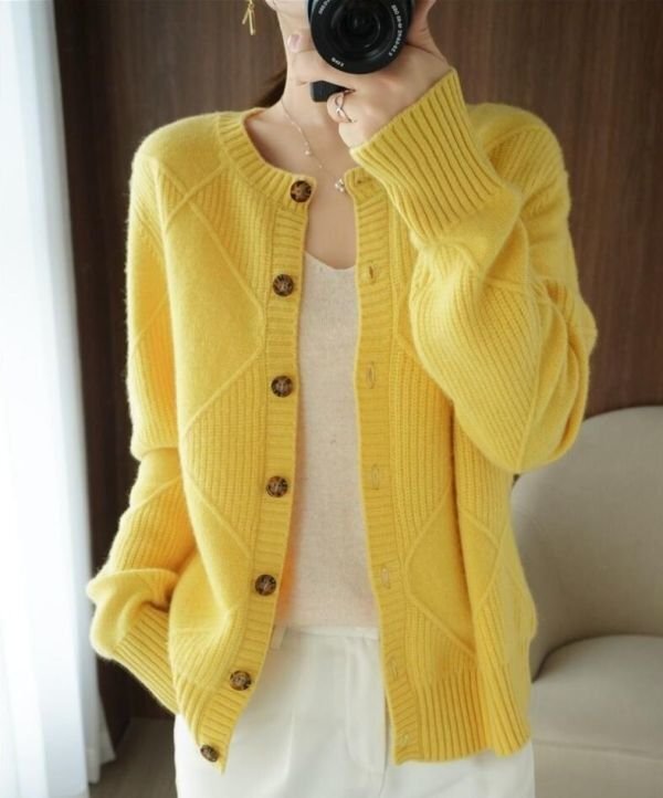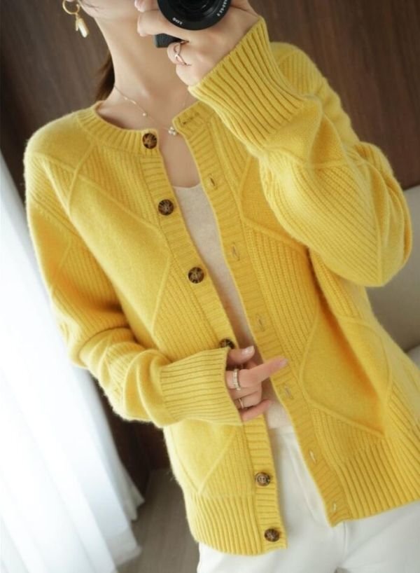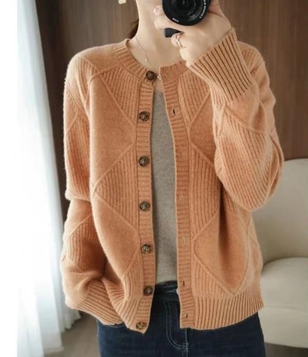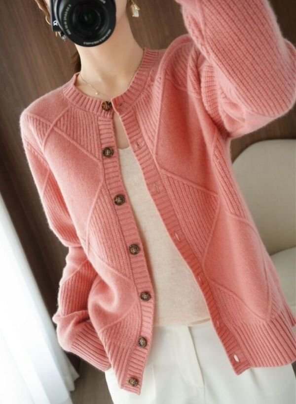 Fサイズ■秋冬 カジュアルゆったり おしゃれ 20304050代 カシミヤ混暖かい ニットセーター カーディガンコート★杏 [浏览原始页面]