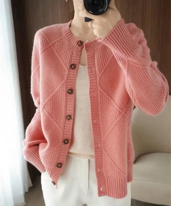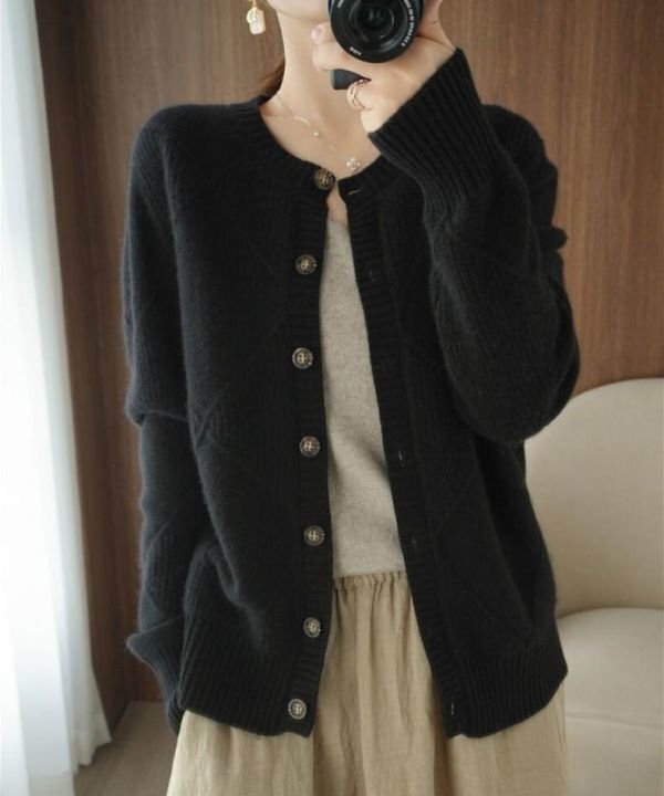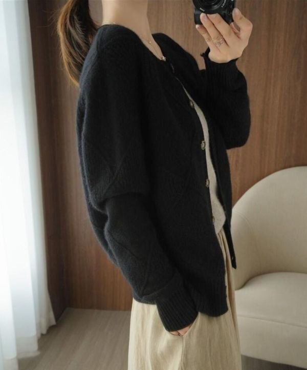 Fサイズ■秋冬 カジュアルゆったり おしゃれ 20304050代 カシミヤ混暖かい ニットセーター カーディガンコート★杏