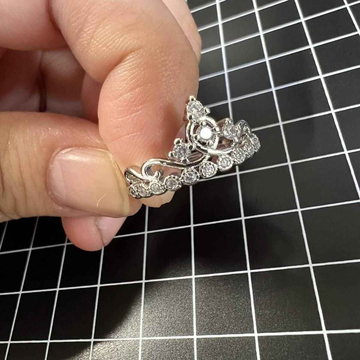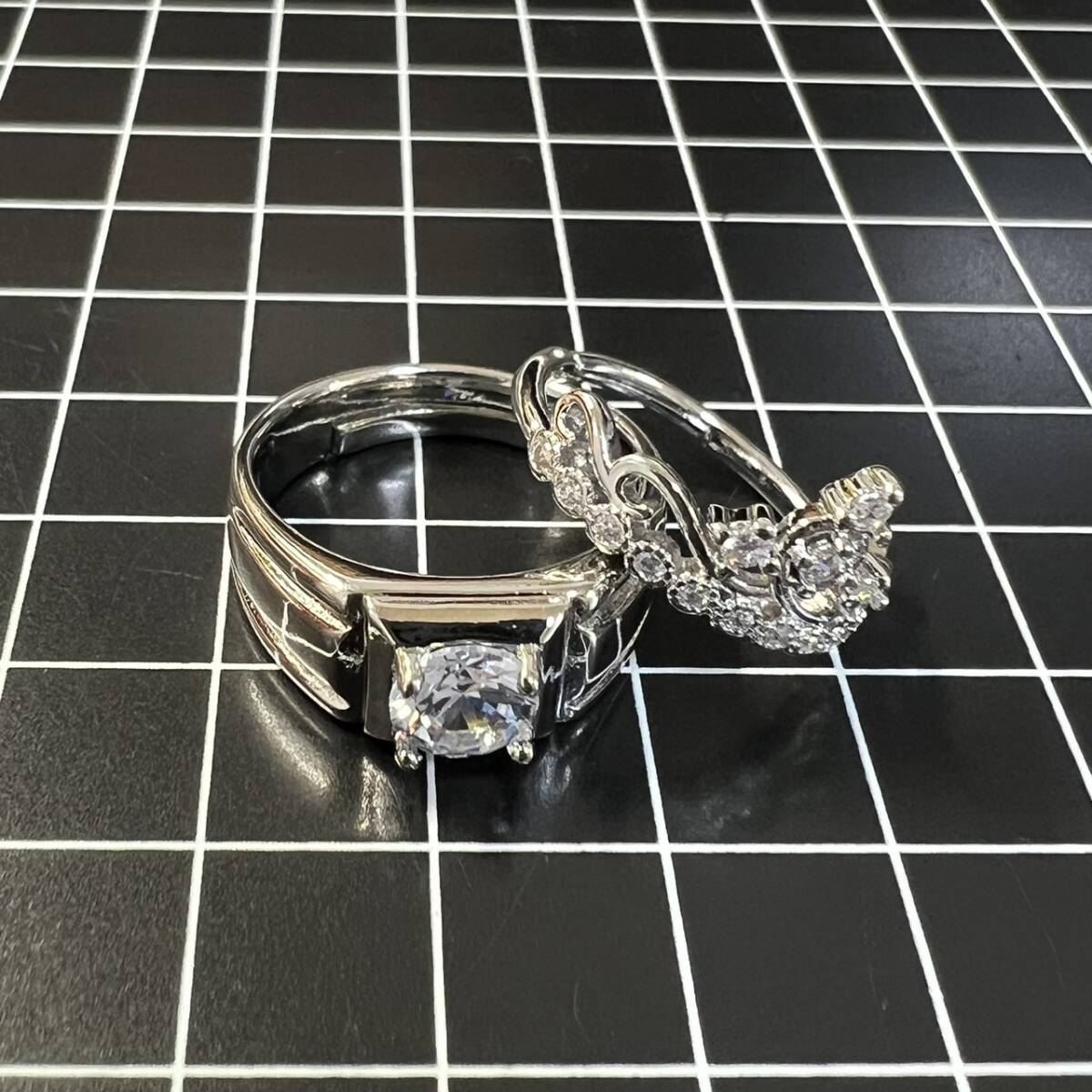 そのまま購入OK! 安心の匿名配送☆ 24時間以内の発送を心がけています。 まとめ購入(同梱発送)はの【まとめて取引】をご利用ください。 ◆━━━━━━━━━━━━━━━━━◆ ジルコニアがか輝くティアラのような華やかなデザインのペアリングです。 存在感のある太めのシンプルなリングと、豪華ななクラウンデザインが可愛い指輪。 完全に閉じていないフリーサイズのオープンリングのため、開閉することで多少のサイズ調節が可能です。 材質:silver925 ジルコニア カラー:シルバー(ホワイトゴールドコーティング) サイズ:フリーサイズ ※仕入先よりの情報をそのまま記載しております。 ◆━━━━━━━━━━━━━━━━━◆ 1cmマスのマットの上にて実物を撮影してます。 サイズ感などの参考にしてください。 他にも多数レディース、メンズ、アクセサリーを出品してしております。 結婚式、披露宴、入学式、入園式、卒園式、卒業式 普段使いからフォーマル、ビジネス、カジュアルまでご利用いただける商品を取り揃えております。 | ||||