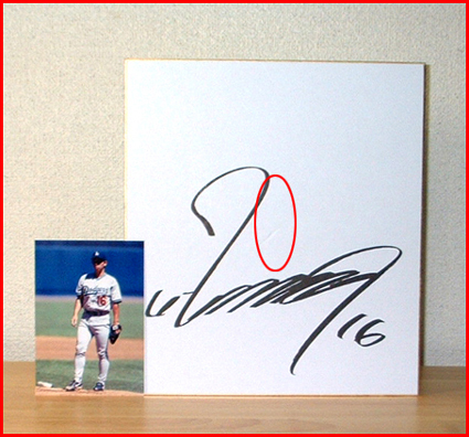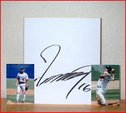 ・このメジャー仕様の初期タイプ(ルーキーイヤーの1995年)のサインは、ドジャースに入団した1995年から翌年5月頃までしか書かれなかった希少で貴重な初期型サインです。 この色紙の詳細はわかりませんがプリントサインと思います。 ・おまけに画像の写真が付属いたします。 | ||
