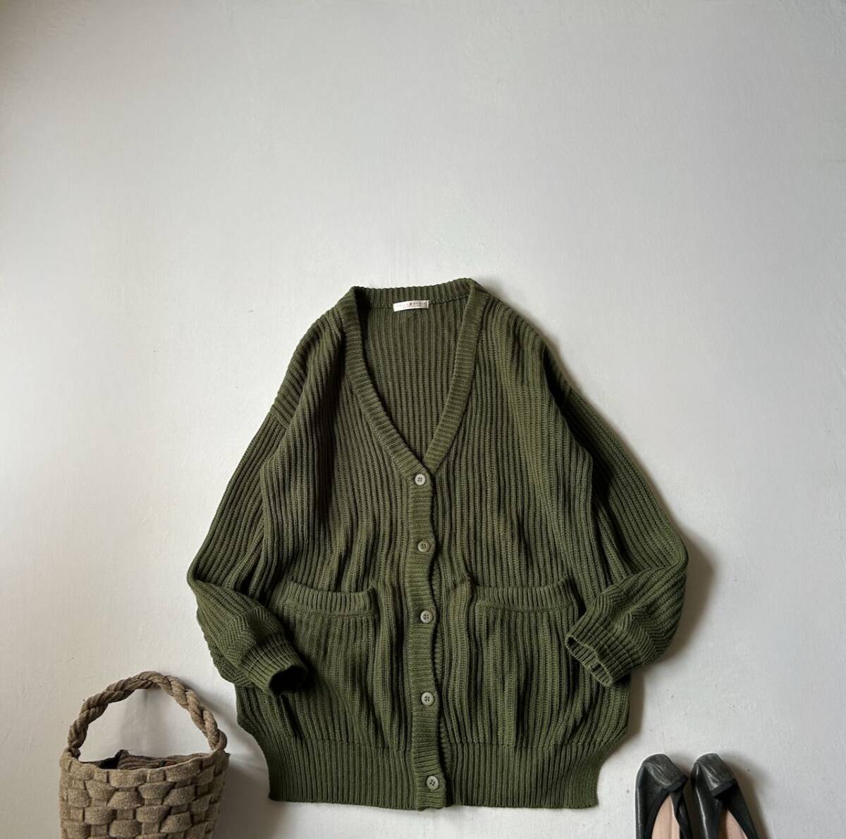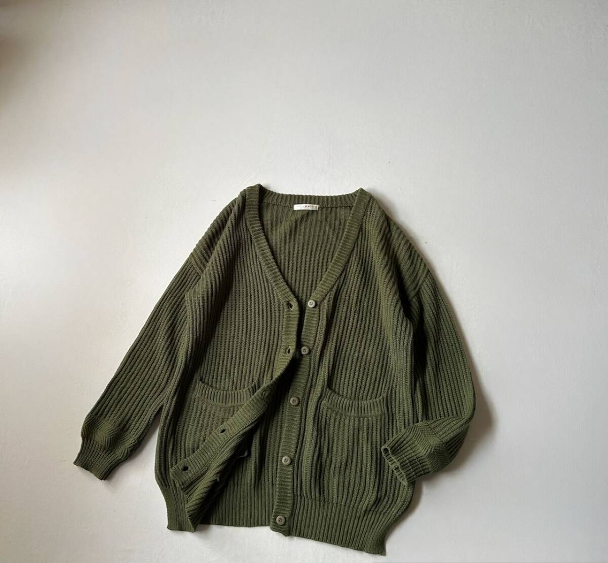 チャイルドウーマン CHILD WOMANの、ゆったりとしたシルエットのシンプルなデザインが◎なカーディガンです。 色 オリーブグリーン系 フロントボタン開閉 左右ハンドポケット付き ドロップショルダー サイズ表示 F 実寸 着丈68cm 胸囲55cm 肩幅62cm 袖丈47cmくらい (平置きにて計測しております。) 素材 綿60% アクリル40% *画像でコーディネートした他アイテムは付属致しません。 中古品とお考え下さい。 特に目立つ汚れやキズはありません。 また、写真画像はモニター環境や撮影状況などに応じて、実際の商品とお色と少し異なる場合があります。よろしくお願いいたします。 ダメージの見落としがある場合はご容赦ください。 他、気になる点はご質問下さい。 なお、落札後のキャンセルはできません。 発送後はノーリターン、ノークレームでお願いします。 オークション終了後、2日以内にご連絡が取れる方のみご入札下さい。 万が一連絡が遅くなってしまう場合は、オークション終了前に、必ず質問欄より お問い合わせ下さい。 | ||||||||
