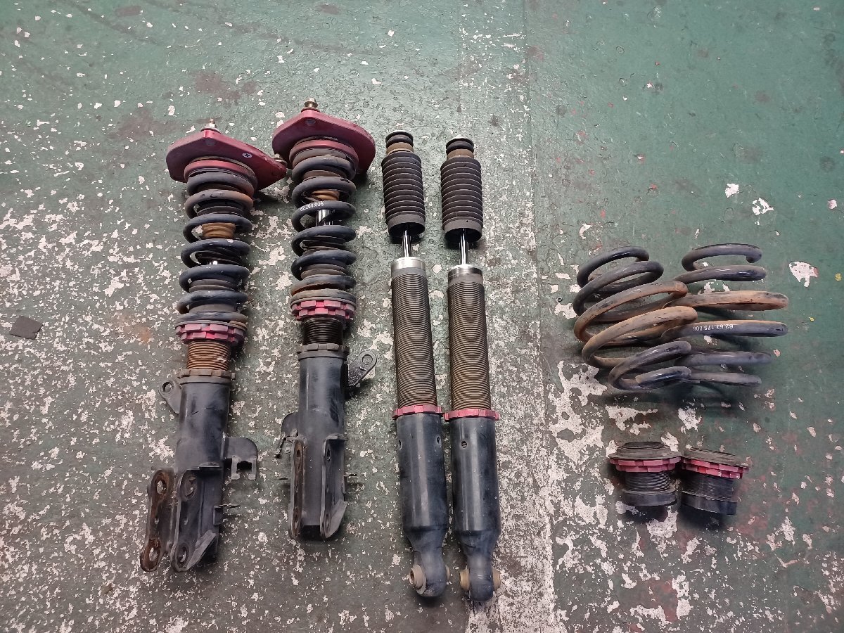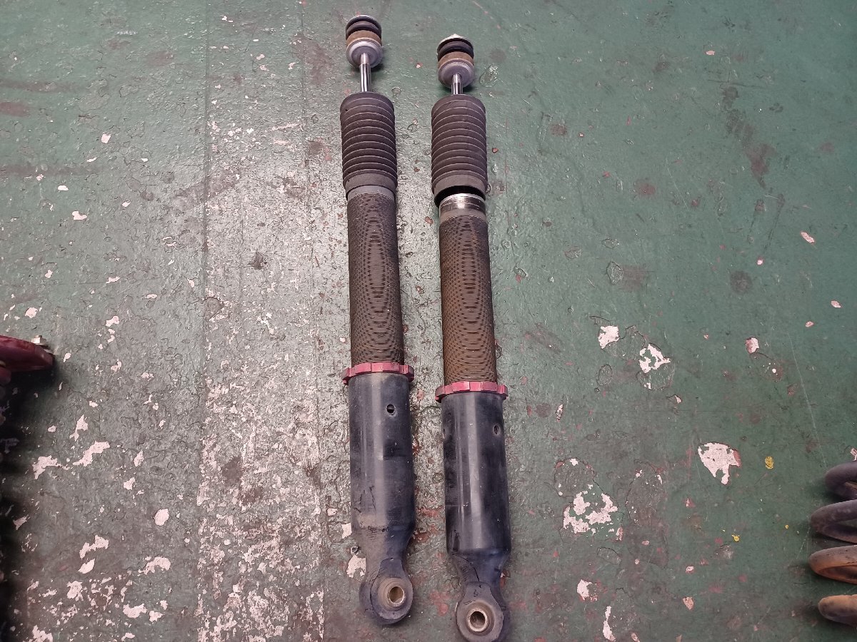 | 商品状態 | 全体 汚れ・傷・サビ 有ります。 4本 車高調整部 固着 有りませんでした。 リア2本 ショック 戻り悪くないです。 減衰力調整付になります。 4本ブーツ 破れ 有ります。 画像で確認お願いいたします。 |