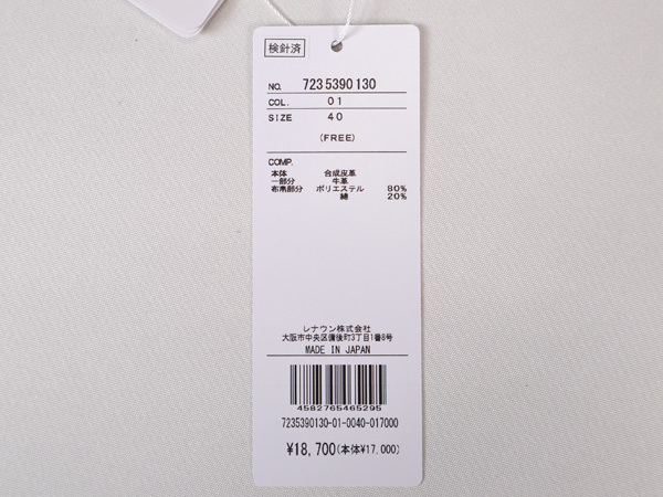 | ■品質/合成皮革 一部分:牛革 布帛部分:ポリエステル80% 綿20% |