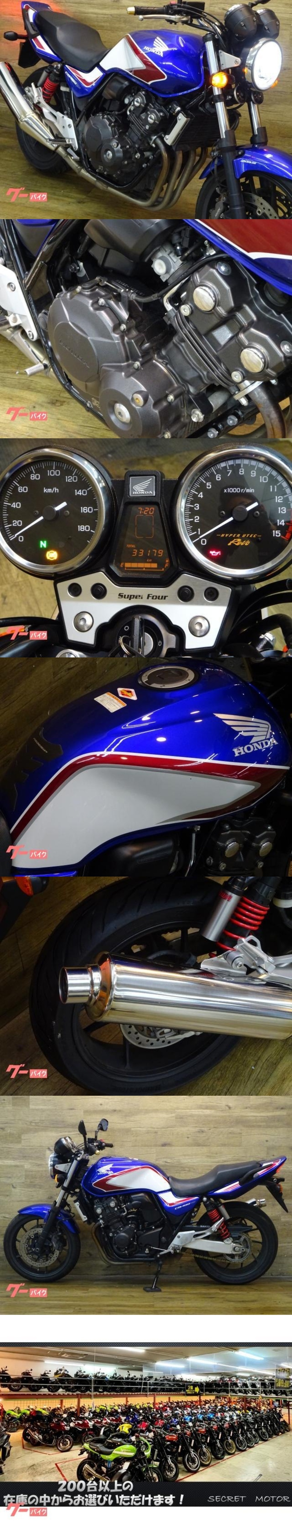 | 関東圏大型店舗!!お客様へ還元価格!!!!! !!! 入札前には、必ずLINE、または電話にてご連絡をお願いします !!! ヤフーオークションは、関連会社の代理出店となります。 記載している当社連絡先へと、「直接ご連絡」いただきましたお客様、「ご来社」いただいたお客様とのお取引が優先となりますので、ご連絡なしで落札されても、車両売約済の場合もあり、ご購入いただけない事もあります。 在庫状況の確認も含め、必ず事前にご連絡ください。 また、落札されても事前連絡のない場合、即時連絡が取れない場合、またご入金の確認が取れない場合は、他のお客様を優先と致します。 <<<ご連絡先>>> 電話 : 03-5831-5815 ※LINEのQRコードは車輛画像の中にございます。 営業時間は、10時~19時まで ~~~~~~~~~~~~~~~~~~~~~~~~~~~~~~~~~~~~~~~~~~~~~~~~ ☆車両情報☆ 車名 ホンダ CB400Super Four VTEC Revo 初年度登録:2020年 メーター走行距離:33179km 車検:返納 <エンジン> 始動、アイドリング、吹け良好です♪ <ハンドル・フレーム・足まわり> フレーム、サスペンション等に歪み等はございません。 取り扱い車両はすべて整備、登録を行ってからのお引渡しとなります。 諸経費に関しては車輛により異なりますので、ご購入前に必ずお問い合わせ下さい。 カスタムパーツ等、分かる範囲にてお伝えしておりますが、認識違いや見落としがある場合もありますので、表記情報の100%保証は出来ません。現状を最優先とさせて頂きます。予めご了承ください。気になる箇所が多い場合や、細部が気になる場合は、近隣・遠方に問わず、現車確認後のご購入をお願い致します。 現車確認は完全予約制です。必ず事前にご連絡ください。 電話番号:03-5831-5815 ※LINEのQRコードは車輛画像の中にございます。 お問い合わせは、『直接』当社LINE、または電話番号までお願いします。 質問ページからのお問い合わせの回答についてはお時間を要する場合があります。 小中大が他社を幅広い車両をご用意しています。 業者様も、一般のお客様も、現車確認大歓迎です。 残念ながら、事前のご連絡がない場合、「誤入札」「誤落札」「いたずら」が多い為、事前連絡のない入札・落札については取り消す事もあります。 ご入札前には、必ず「現車確認」または「お電話」「メール」にてご連絡をお願いします。 電話番号:03-5831-5815 ※LINEのQRコードは車輛画像の中にございます。 >>>>>>>>>>>>>>>>>>>>>>>>>>>>>>>>>>>>>>>>>>>> □ 整備登録を行ってからお引渡しするオートバイショップになります。 □ 車輛、整備プランににより、登録費、整備費用が異なり、車体価格の他に、諸経費が必要となります。 □一陸運局の管轄外のお客様には、管轄外登録費¥9.800(税込)が掛ります。 □仮ナンバーでのお帰りなどについてはお断りしておりますので、何卒ご了承ください。 登録諸経費については、お住い地域によって異なりますので、お見積もり提案時にご案内しています。 お気軽にお問い合わせください。 □ 値引き交渉には対応しておりません。 □ 配送については、当店手配・お客様手配、または積載可能車両による引き上げ等、対応しています。お気軽にご相談ください。 お見積もりご希望の際に、配送先住所(市区町村名まで必須)をお知らせください。配送会社への車両持ち込みに関しては5500円(税込)で行います。 □ かんたん決済・クレジットカードはご利用できません。 □ 落札後のキャンセルは受け付けておりません。ご不明点等がありましたら、必ず入札・落札前にお問い合わせください。 落札後のキャンセルについては、車体価格の20%のキャンセル費用が発生いたしますので、予めご了承ください。 <<<<<<<<<<<<<<<<<<<<<<<<<<<<<<<<<<<<<<<<<<<< SECRET MOTORは、国産小型~大型車まで、一般の方向けの販売会社となります。 現車確認、歓迎です。 様々な車両を準備していますので、気軽にお問い合わせください。 << お客様へ >> ※ 車両について 当社は、状態の良い車輌を相場より安く仕入れた車両を、様々な方へ車体提供させていただきます。 より多くの方にお楽しみ頂けるように、安価にて提供しておりますので、 先に売約済みになることも多くございます。 お早めにお問い合わせ頂くことをオススメ致します。 ※ ご購入について 名義変更・ナンバー登録等については、当社にて完了後のお引き渡しとなります。仮ナンバーでのお帰りなどについてはお断りしておりますので、何卒ご了承ください。 登録諸経費については、お住い地域によって異なりますので、お見積もり提案時にご案内しています。 お気軽にお問い合わせください。 ※ 現車確認について 多数のお客様がご来店いただき混雑する時もあります。 その場合、お待たせしてしまうこともございますのでご了承ください。 ※ 配送・納車引き渡しについて 配送については、当社手配・お客様手配、または積載可能車両による引き上げ等、柔軟に対応しています。お気軽にご相談ください。 配送費用については、お見積もりご希望の際に