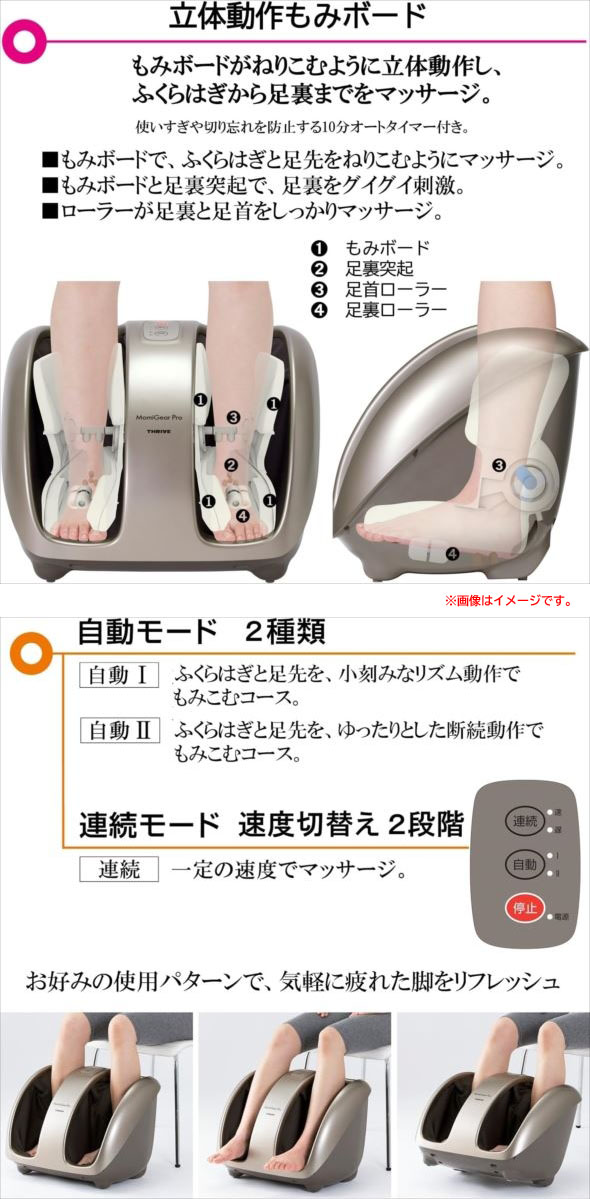 【商品特長】 ◆ふくらはぎから足裏を、もみとローラーで一度にマッサージするフットマッサージャー。 従来機種の機能はそのままに、足裏ローラー、足首ローラーを新搭載。 ◆「モミボード」は、ふくらはぎをしぼり上げ、足をつつみ込みながらマッサージ。 固定突起は、つま先・かかとを刺激する。 ◆2種類の自動コースを搭載し、使い過ぎや切り忘れを防止する「10分オートタイマー」付きの安全設計。 | |||||||||||||||||||