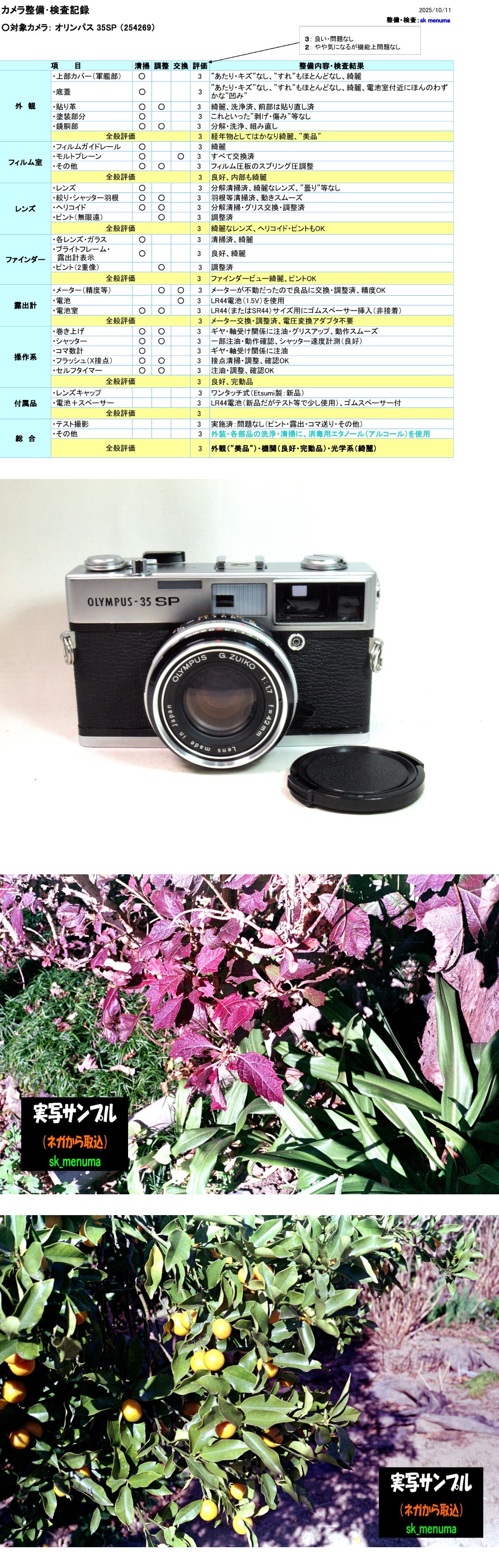 | ◆”プロご用達”、オリンパスのレンズシャッター式レンジファインダーカメラ ・オリンパスが60年代の最後に送り出した力の入った傑作カメラ ・露出制御は、平均測光とスポット測光が可能で、プログラム AEとLV(ライトバリュー)読みとりのマニュアル、そして フラッシュマチックが可能 ・シャッターは、B、1~1/500秒、セルフタイマーあり ・レンズは、 傑作レンズといわれた G.Zuiko 1:1.7 f=42mm ◆商品の状態・整備内容、および追加写真 ![]() powered by auction-labo.com |