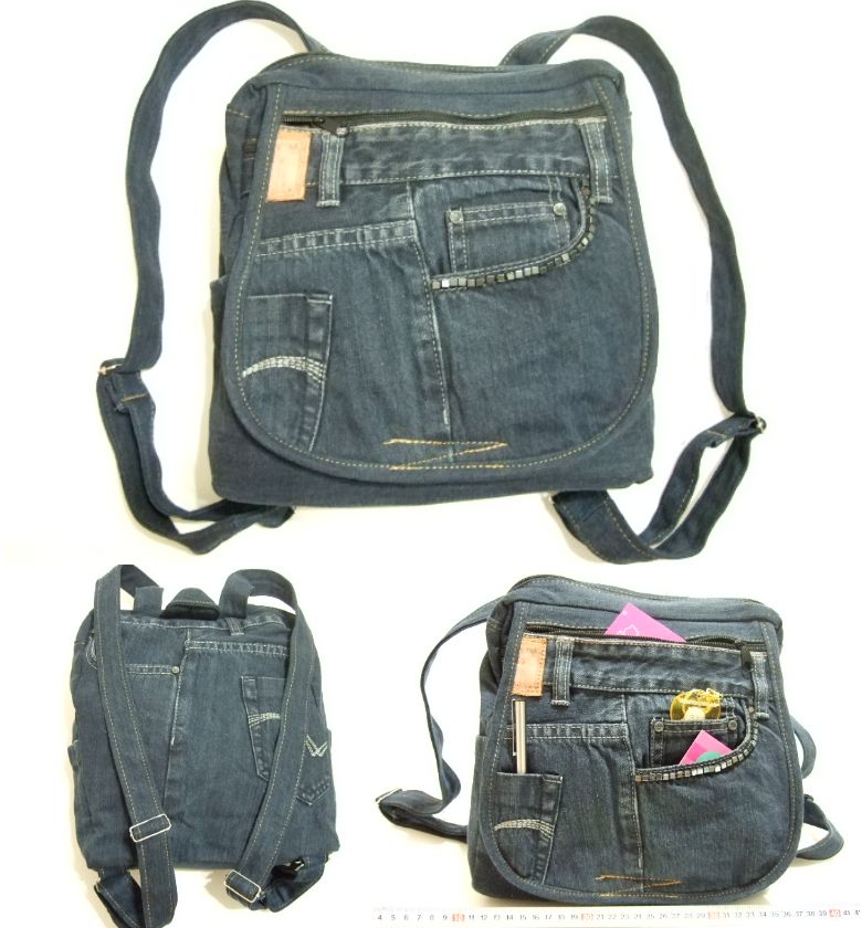 | 商品名 | 横浜最新 魅惑のデニム カバー付きミニリュック♪3連巾広チャック リメイクオリジナルバッグ 横巾約25~32cm 縦30cm マチ8.5cm底板付き |
