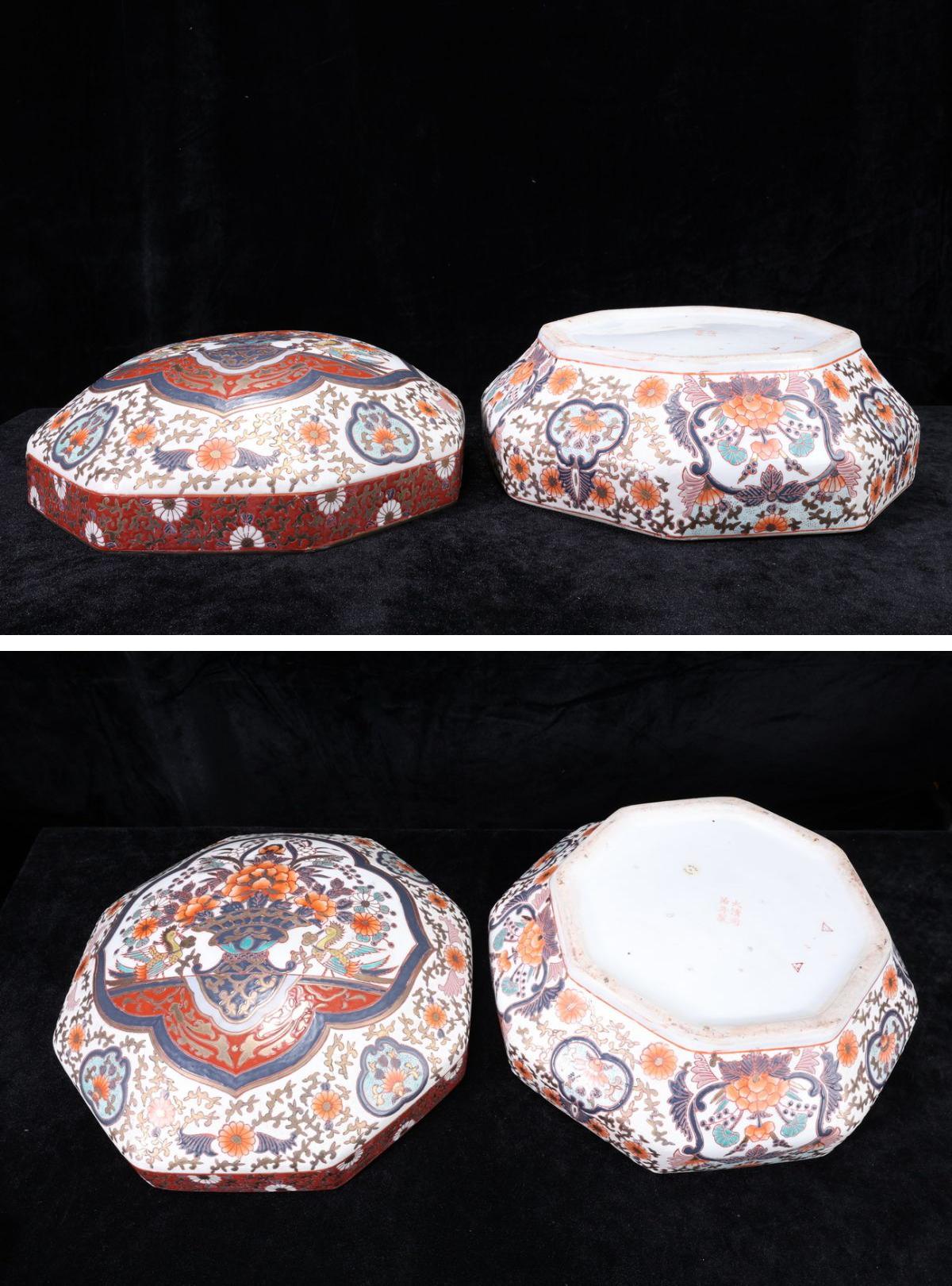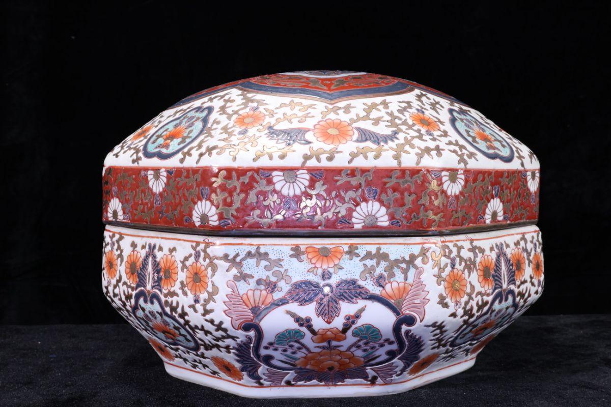 【珍品堂】1円から 有田焼 伊万里風 染錦牡丹絵 蓋付 小物入れ 柘榴絵 時代物 古美術 骨董品 H23cm AE21I-sr1