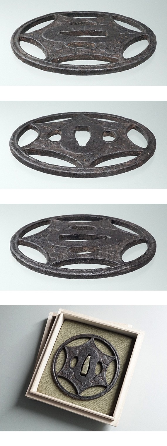 反亀甲形の中に鎌倉鐔らしい梅花が散らしてあります。