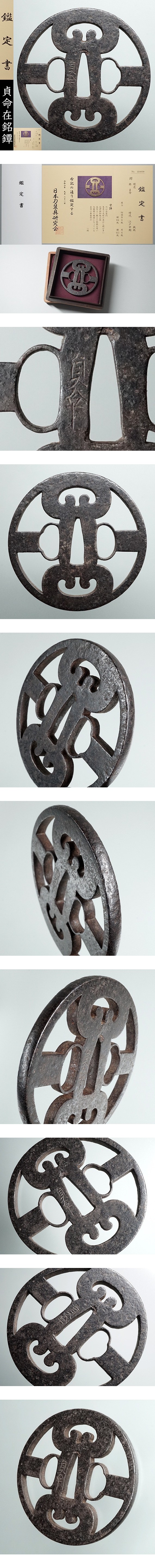 【鑑定書付】紀州の鐔工 貞命在銘「引両鐶透」