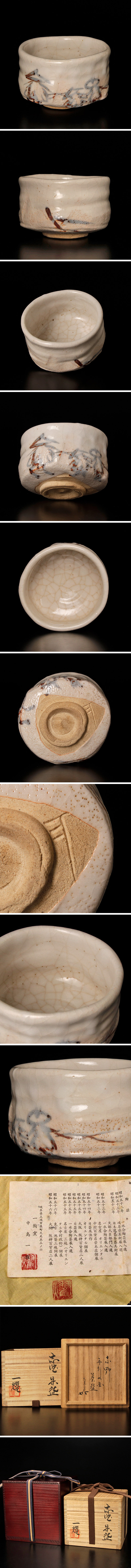 | 【古美味】中島一耀『堀内宗完(兼中斎)書付』舟引の画 志野茶碗 茶道具 保証品 |
