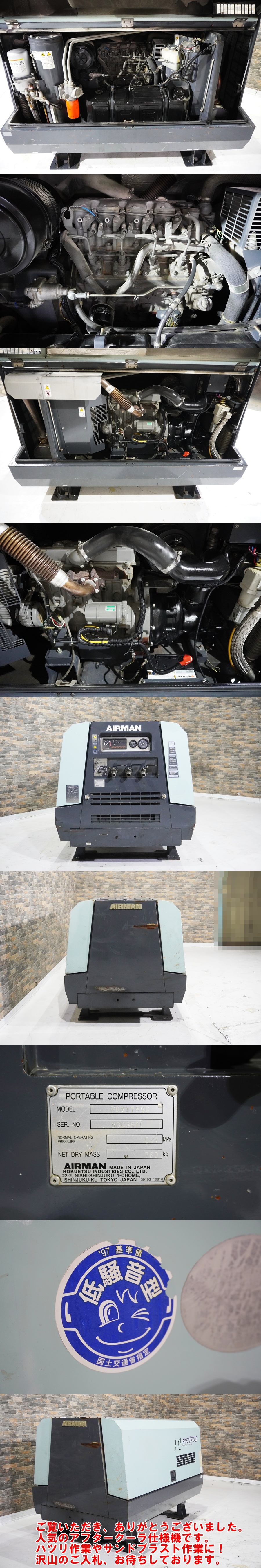 Design by. templu.net オークションをご覧頂き有難うございます。 弊社は、数多くのコンプレッサー販売実績を 元に商品の 品質には 絶対の自信 を持って お客様へお届けしております。 是非ご安心してご入札下さい! 皆様に、本物のコンプレッサーを 出来るだけお安く提供する為に 目玉商品 【完全売切り】 での 出品となります! お問い合わせは 株式会社丸総グループ 0569-47-8221まで! 今回は、 "超"オススメの1台 をご用意しました 北越工業 エアマンより、 50馬力 エンジンコンプレッサー 【PDS175SC】 のご紹介です。 ≪担当者コメント≫ 超即戦力な ディーゼルエンジンコンプレッサーが入荷しました。 当然機械状態良好で、 これから大活躍の一台です。 土木現場でのハツリ作業、エアー源として レベルの高い空気を放ちます♪ 人気のアクタークーラ仕様機を お安く手に入れるチャンスです! 沢山のご入札、お待ちしております。 また、安心してご購入いただけるよう動作確認の YouTubeショート動画 を作成しました。 お忙しいお客様に、 1分で動作確認していただけるように 作成しました。 チャンネル登録と高評価お願いします! ショート動画は下記リンクより、ご確認ください。 (yahooの警告が出ますがご安心下さい!!) ↓↓↓↓↓↓↓↓↓ 【PDS175SC】 ショート動画 ↑↑↑↑↑↑↑↑↑ ●リセール◎ 国内外で人気の"エアマン"コンプレッサーです。 古いモデルでも未だ高値で取引されます。 売却時も高いリセールが期待できます! ●ディーゼルエンジン 可搬性・耐久性に優れた ディーゼルエンジンです。 土木工事・建設・道路工事など あらゆる現場のエアー源として大活躍します。 ●アフタークーラ仕様 アフタークーラ仕様機です。 圧縮空気中の水分を 冷却・結露させ、除去します。 ハツリ作業やサンドブラスト作業に もってこいです! 【商品詳細】 品名:コンプレッサー メーカー:北越工業 エアマン 型式:PDS175SC メーター:7,924時間 燃料:ディーゼル 全長(約):1,850mm 全幅(約):1,150mm 全高(約):1,200mm 機械重量(約):760kg ※機械の下取りも大歓迎! 弊社基準状態ランク:B ------------------------------ トラブルやいたずら入札が多い為、 評価が悪いと弊社が判断した方の ご入札は辞退させて頂きます 何卒ご了承ください。 (注意) 新規の方 のご入札も基本的に 受付いたしておりません。 新規でのご入札を希望の方は 弊社まで一度ご連絡下されば 入札可能 となります。 トラブル防止の為、何卒ご理解下さい。 領収書・請求書を発行希望の方は お取引開始前に必ずご相談ください。 かんたん決済でのお支払の場合は 発行できかねます。 ------------------------------
