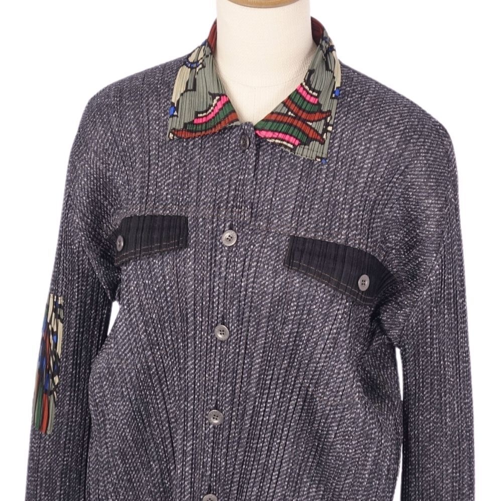 | 美品 プリーツプリーズ イッセイミヤケ PLEATS PLEASE ジャケット ロングスリーブ 総柄 プリーツ レディース 3 グレー |
