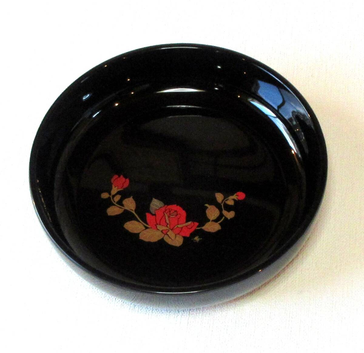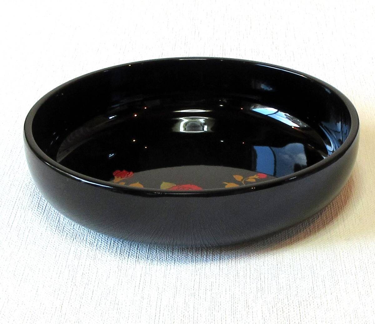 ★会津塗 菓子鉢 黒 薔薇蒔絵 単品★送料無料 | |||