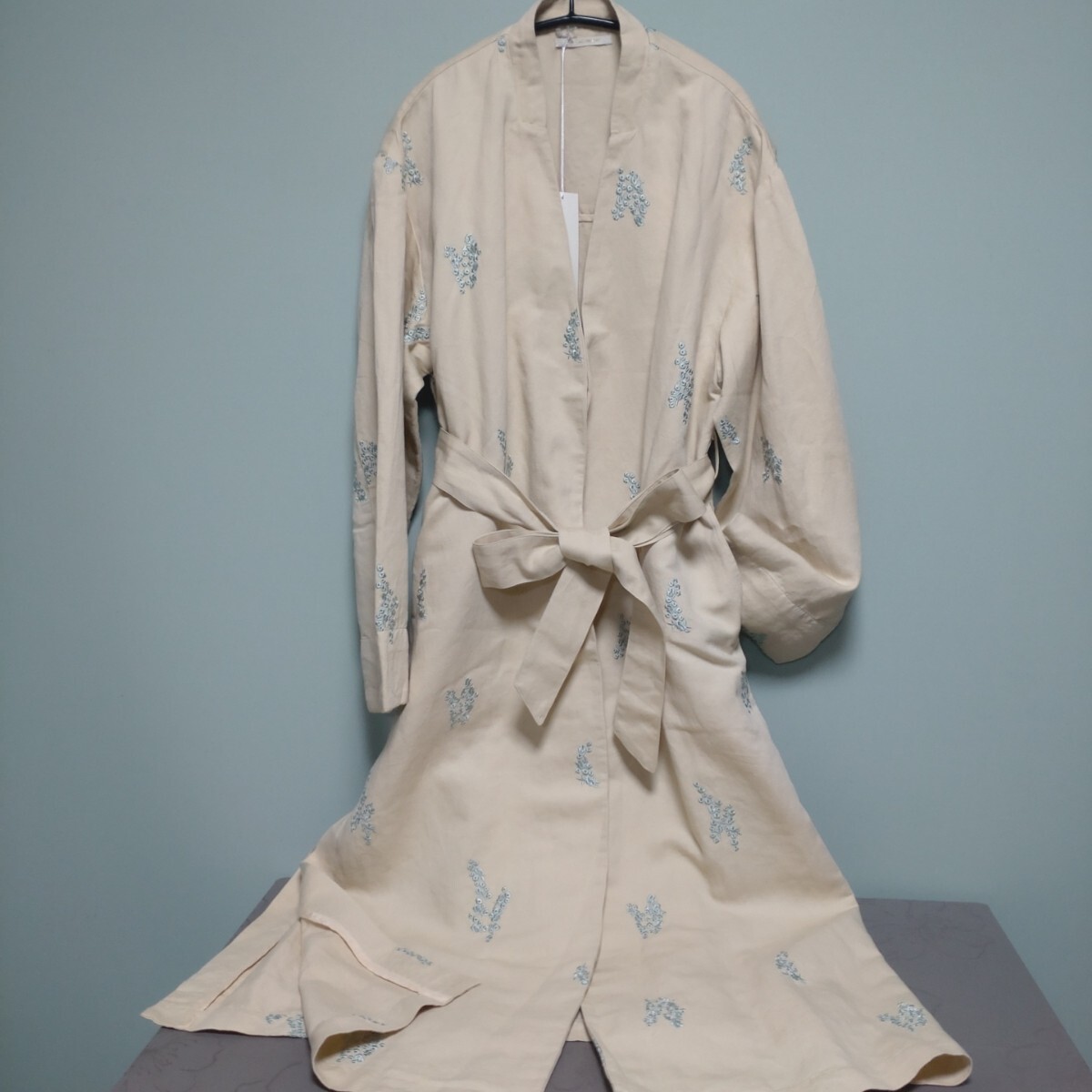 | 状態 | 友人からの委託品です。タグ付未使用、綺麗な状態です。ヌキテパのコットンリネンのガウンコート、両サイドにポケット、ウエスト紐あり、裏地なし、とても素敵なお品です。サイズ表示フリーです。どうぞご愛用ください! |