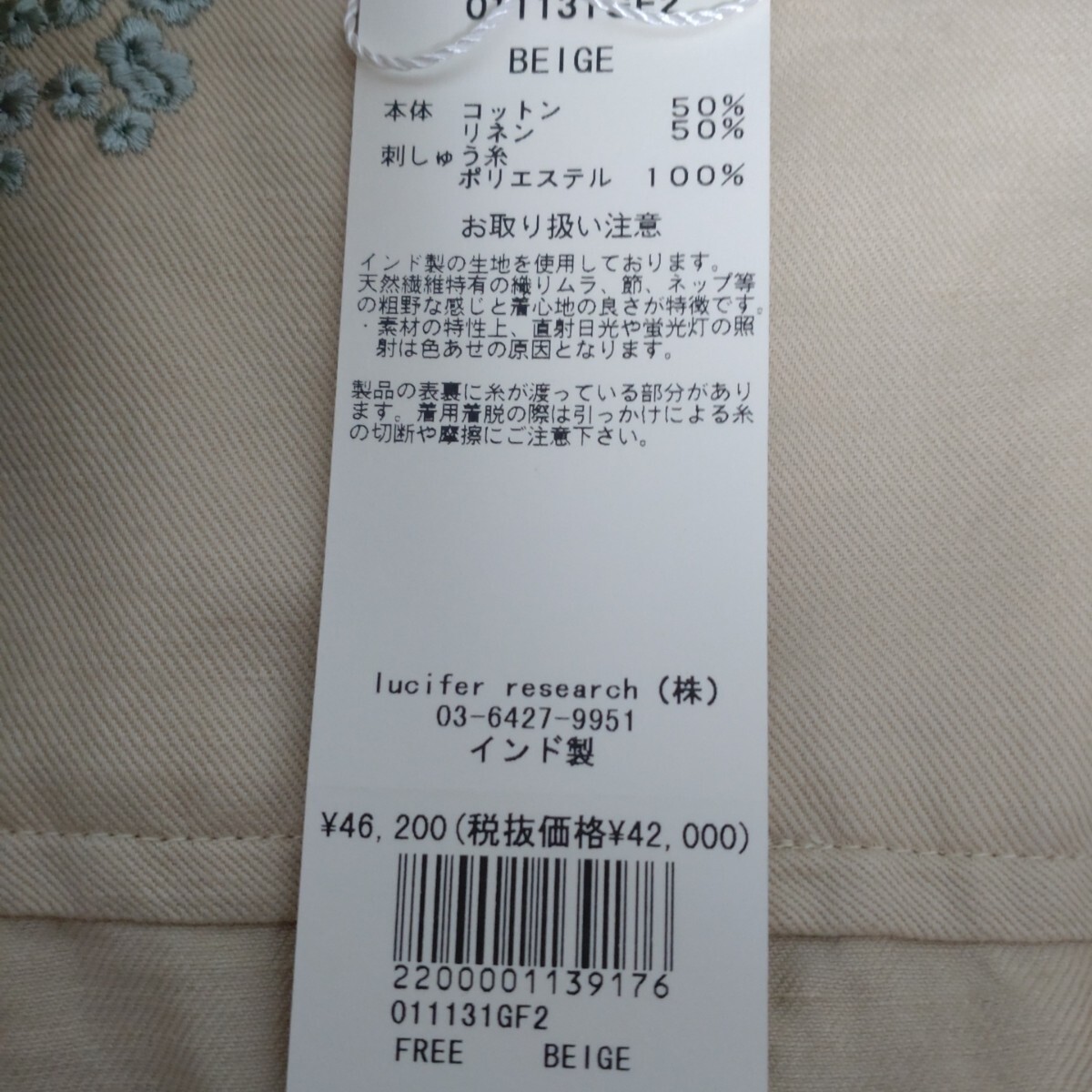 | 色 | 画像参照 ベージュ地に水色刺繍 |