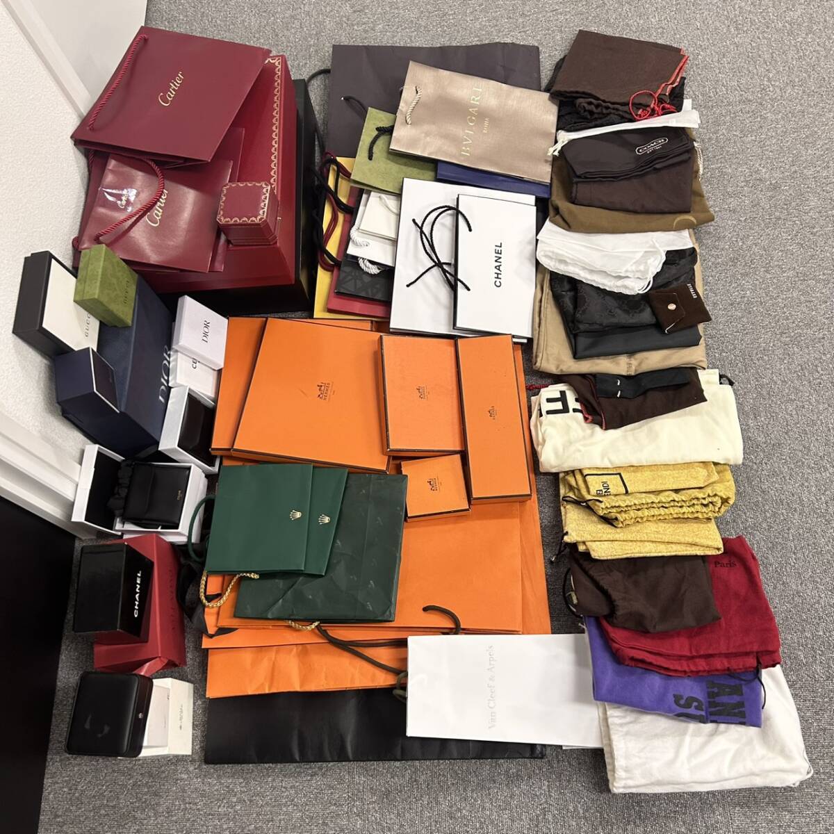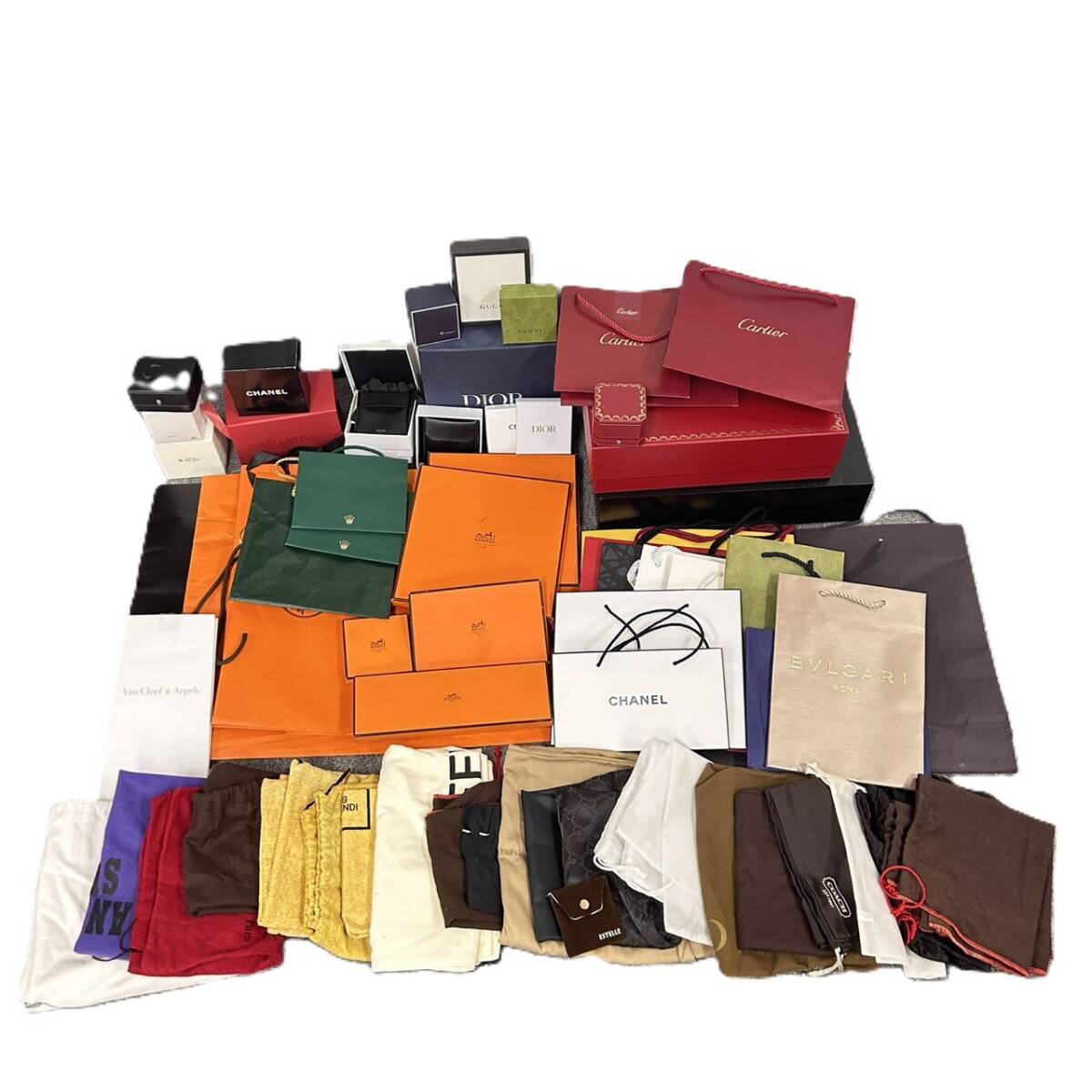| S エルメス カルティエ ロレックス ヴァンクリーフ ディオール セリーヌ シャネル ブランド ショッパー 箱 空き箱 紙袋 保存袋 おまとめ | ||
