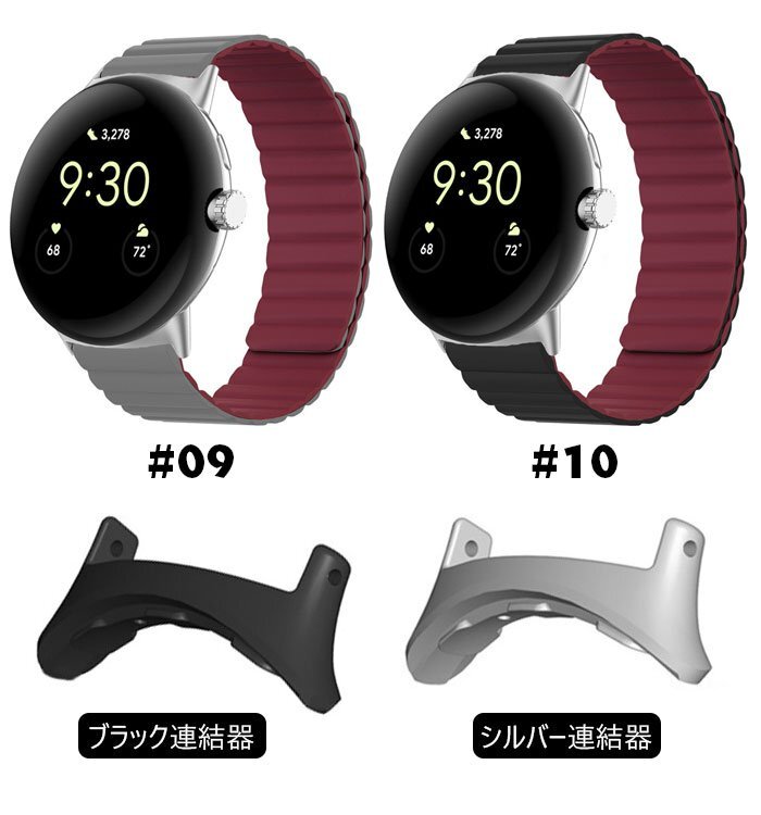 Google Pixel Watch対応 バンド シリコン素材 磁吸引式ループ 自由調整 腕時計ベルト スポーツ ベルト 交換用 ベルト ☆10色選択/1点