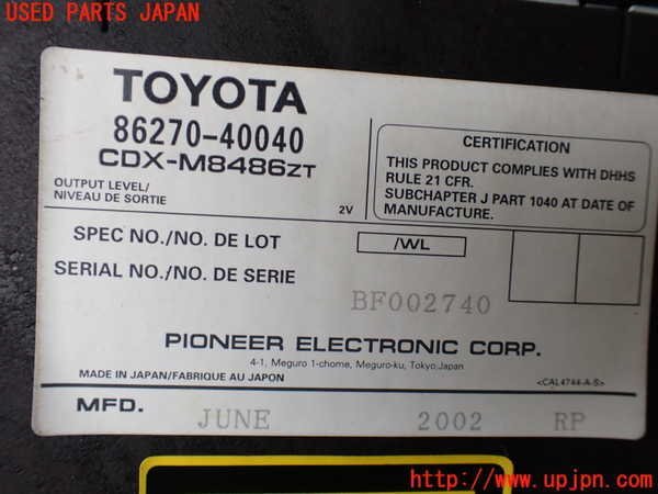 | 商品名 | CDチェンジャー | 部品メーカー名 | PIONEER |