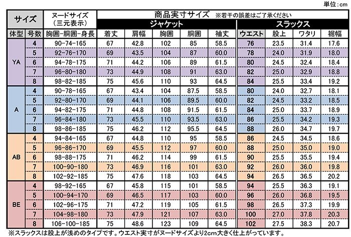 | 注意事項 | ※シャツ・ネクタイ等は、付属しておりません。 ※商品により、製造の際のパターンが異なりますので、同サイズ表記でも、必ずこの画面上のサイズをご確認の上ご注文下さい。 ※商品写真は、パソコンのモニターやカラー設定、お部屋の照明、日光などにより色の変化が感じられる場合がございます。 予めご了承下さい。 ※当店では環境に配慮した簡易包装をおこなっております。 |