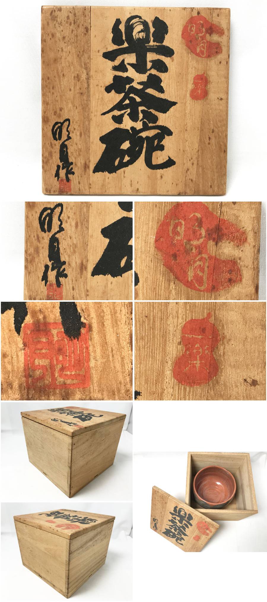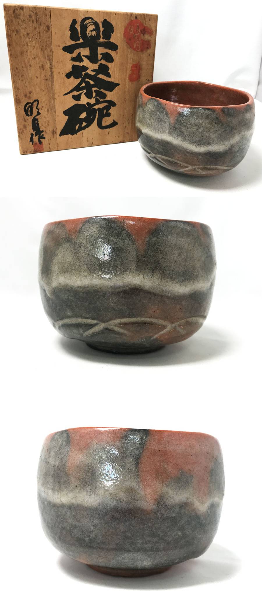◆未使用!幕釉赤楽茶碗 楽茶碗 一楽 楽焼 底部在印 口径約11cm 高さ約8cm 重量約372.8g 貫入 茶碗 抹茶碗 茶器 茶道具 陶磁器 共箱付 [浏览原始页面]