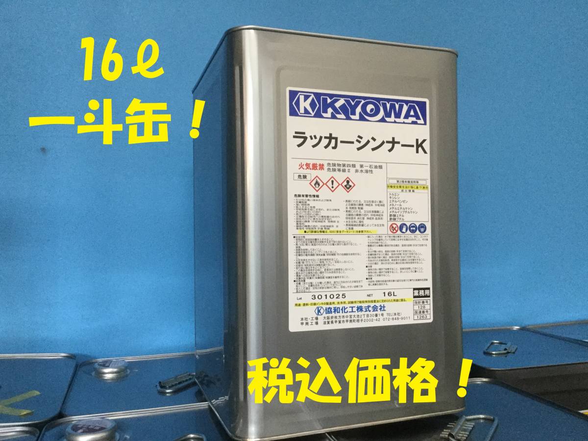 | * 商品詳細 * 協和化工株式会社 ラッカーシンナー 16ℓです。 板金、塗装、建築、エアースプレーガン、エアーブラシ、刷毛、ローラー 希釈・洗浄などに。 ●法定表示物質● トルエン、酢酸エチル、メタノール、メチルエチルケトン | ||||||||