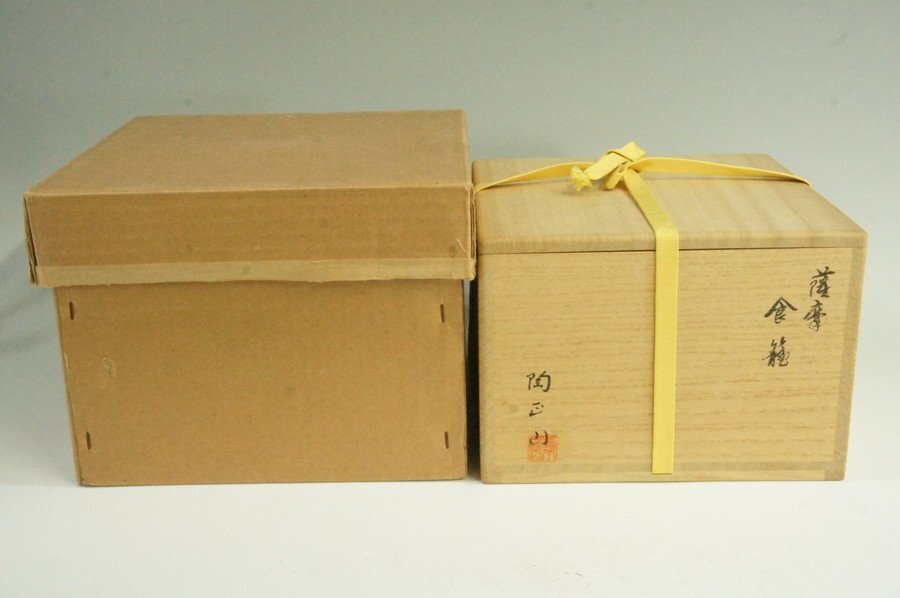 ●表千家流堀内家十二世 兼中斎 堀内宗心 書付/薩摩焼 陶正山窯 二代橋本陶正山 薩摩木瓜形食籠 共箱 紙箱 傷や汚れ有 茶道具
