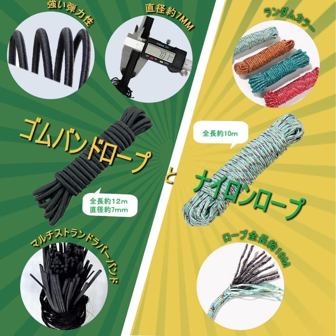 【ゴムバンドロープ付属】この荷台シートには、ゴムバンドロープ12mと余分なナイロンロープ10mが付属しており、お好みの長さにカットできます。7mm伸縮性編組ゴムロープを採用、丈夫で軽くて、高温や低温な環境でも老化したり、硬くなったりしません。また、利用場合によってカットできます。