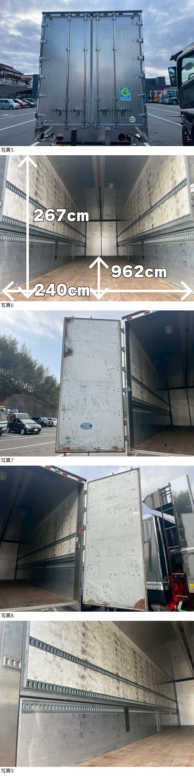 | 大型 ウイング 箱 日野 4軸低床より取り外し トランテックス製 ジョルダー床 内寸:950×240×256㎝ |