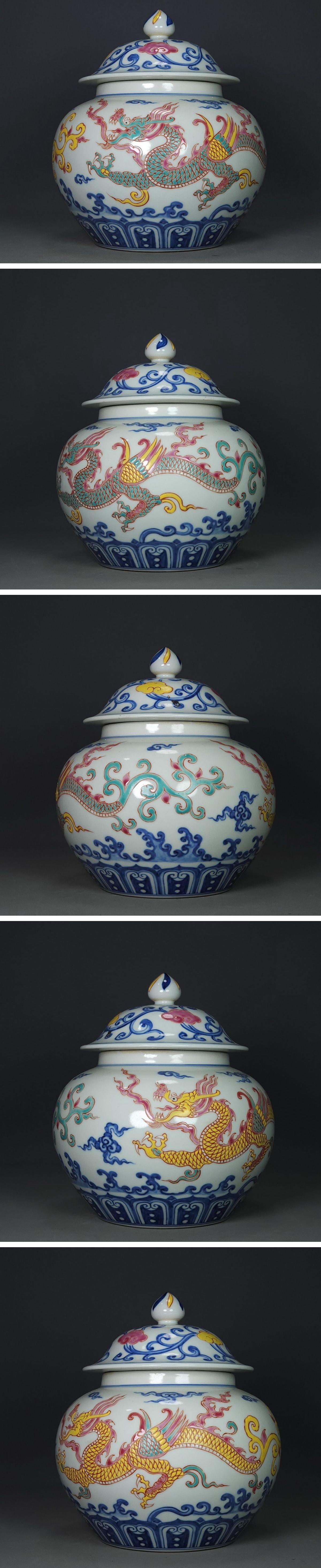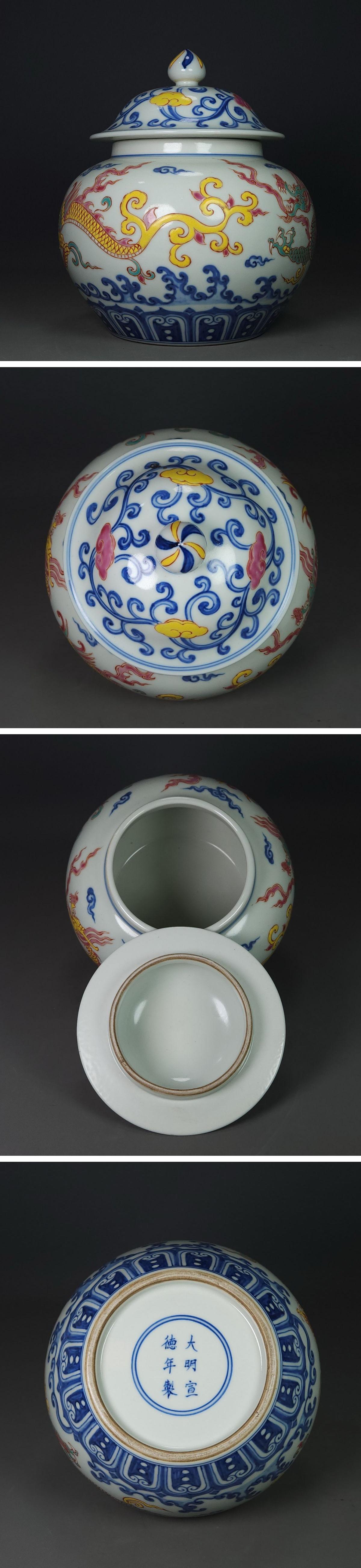 【清】関西某オークション購入 中国・明時代 大明宣徳年製 雲龍文蓋壺 極細工 古置物 古擺件 中国古美術7L12-RS3