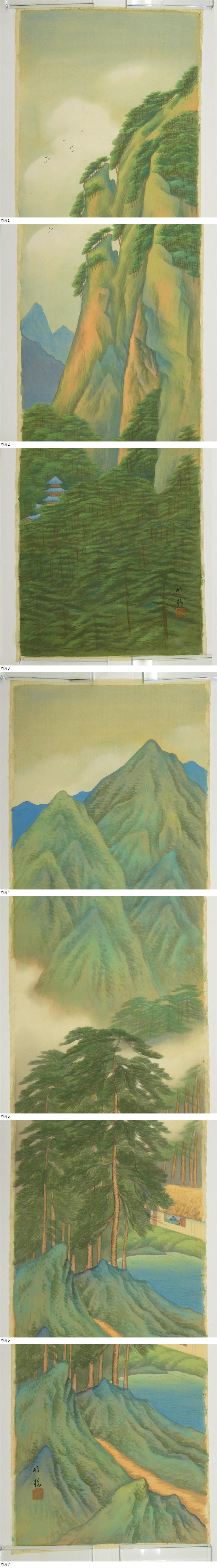 | 【管理番号】y12775-sr 【商品名】 小野竹喬 山水画メクリ 3種 【年代】 大正~昭和期頃 【形状】 3枚 【サイズ】 124cm×44.5cm他 【商品詳細】 絹本彩色極少星シミ描きおろしのままメクリ状態。箱ナシ。 ※印刷ではありません。肉筆物です。 時代経年による多少の劣化もございますので、写真を良くご覧になってご入札ください。 小野竹喬(おのちっきょう) 1889~1979年。日本画家。岡山県生。名は英吉。竹内栖鳳の門に学ぶ。大正7年土田麦僊らと国画創作協会を創立。帝展・新文展で活躍し、戦後は日展で重きを成す。一貫して日本の自然に取り組み清澄な透明感の中に豊かな詩情と独特の滋味のある画風で、風景画の分野に確固とした新視覚を示し続けた。京都絵専教授。芸術院会員。文化功労者。文化勲章受章。昭和54年歿、89才。 |
