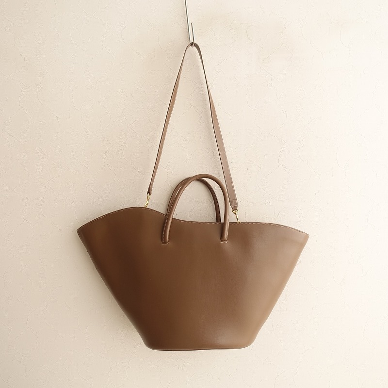| LITTLE LIFFNERの2WAY TULIP バッグです。カラーはくすみがかったブラウンで素材はレザー、開口部はベルト留めです。内側にはベージュの裏地&ジッパーポケットが1つとオープンポケットが2つあり、トートと取り外し可能なショルダーの2way仕様です。定価(メーカー希望小売価格)83,600円の商品です。 |