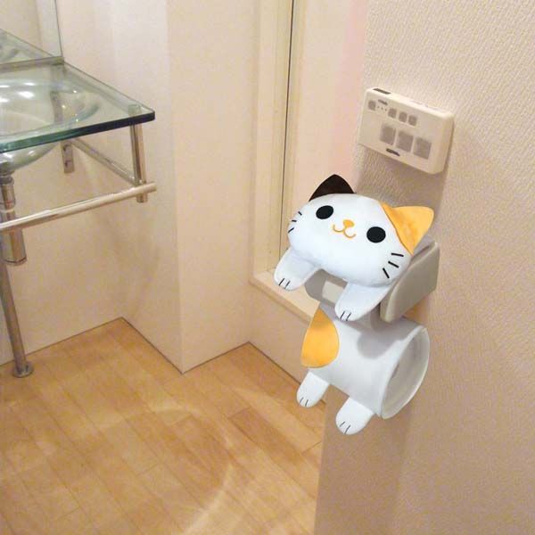 ねこのトイレロールペーパーホルダー ミケ 大きなお顔でインパクト大! ねこが可愛くぶらぶら! ・ぬいぐるみみたいな可愛いねこモチーフのトイレ用ペーパーカバーです。 ・面ファスナーで簡単に取り付けができます。 ・お腹の部分にはロールペーパーを1つストックでき、実用的なデザインです。 ・短めの毛足で手触りもよく、トイレを癒しの空間にしてくれます。 生産地 中国 本体サイズ 上パーツ:W155×D55×H320mm 下パーツ:W160×D10×H235mm 素材 ポリエステル 注意事項 ※ご購入前にご確認ください。 ぺーパーホルダーのホルダーとフタの間隔のすき間が4mm以上、幅114mm以上のサイズに対応しています。 ブランド 明邦 |