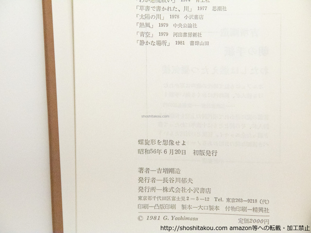 螺旋形を想像せよ 署名入 / 吉増剛造 ◯当店在庫から「吉増剛造」の本を探す| ★ 発送方法 (送料無料) ・日本郵便のゆうパケット・レターパックライト・レターパックプラス・ゆうパックの中から荷姿の大きさに適した方法で発送します。(発送方法や到着日時はご指定いただけません。) ・上記発送方法はすべて追跡番号付き・土日配送有・速達扱いです。ゆうメールや定形外は発送に使用いたしません。 ・ゆうパケット・レターパックライトは郵便受けにお届け、レターパックプラス・ゆうパックは配達員対面受取です。防水梱包します。 ★ 必ずお読みください ・代金決済後の次の火木土に発送します。 ・ストア出品です。ご注文時に必要事項のご記入・決済いただいた後は、やり取り不要です。商品の到着をお待ち下さい。 ・肉筆物・美術作品は真作保証いたします。 ・商品のレファレンス(調べ物)サービスは行っておりません。また当店商品以外の無料鑑定は行っておりません。 |
