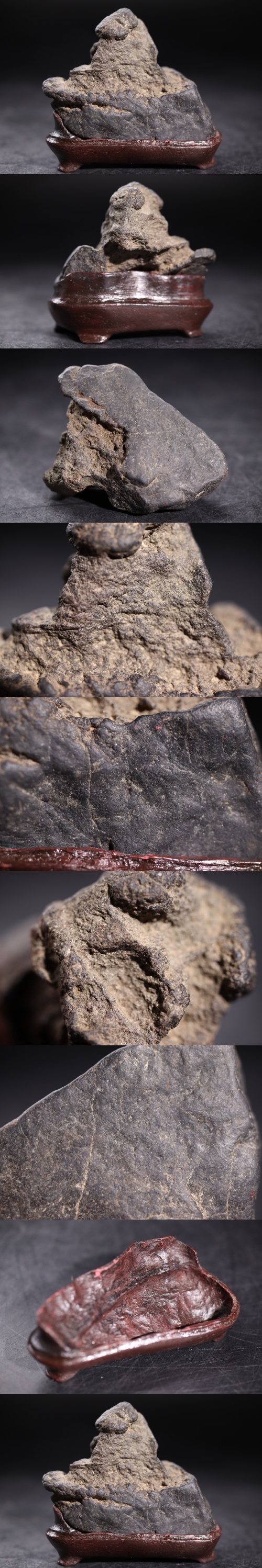| 時代 小型 鑑賞石 唐木 台座付 / 石工芸 自然石 置物 検索: 姿石 古谷石 霊壁石 太湖石 遠山石 .G2320 |