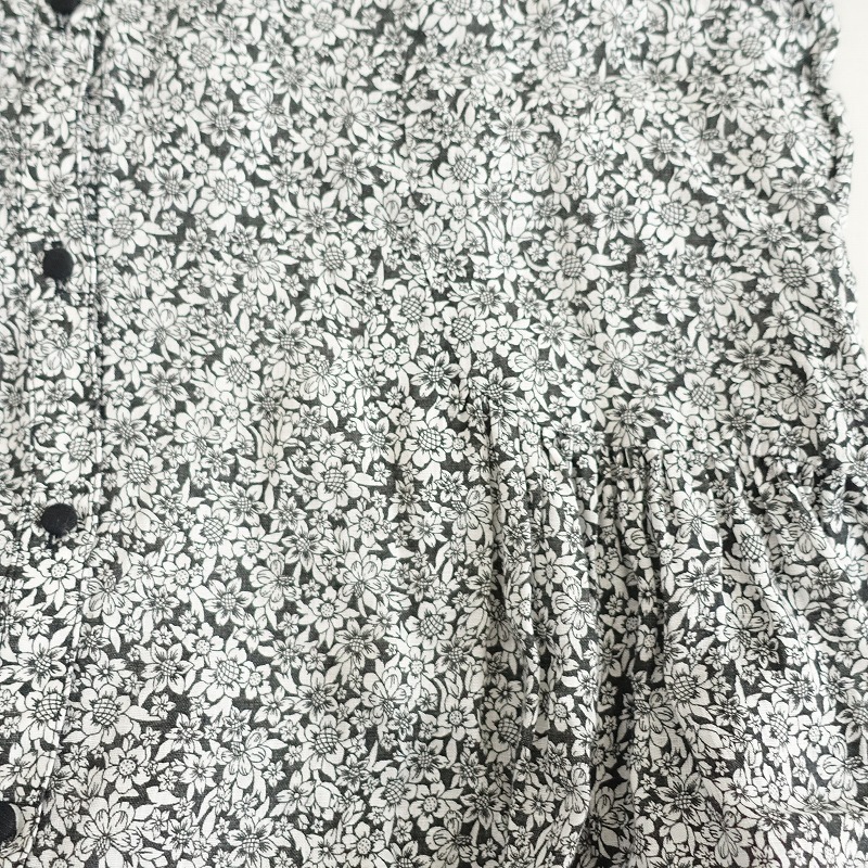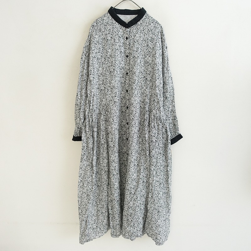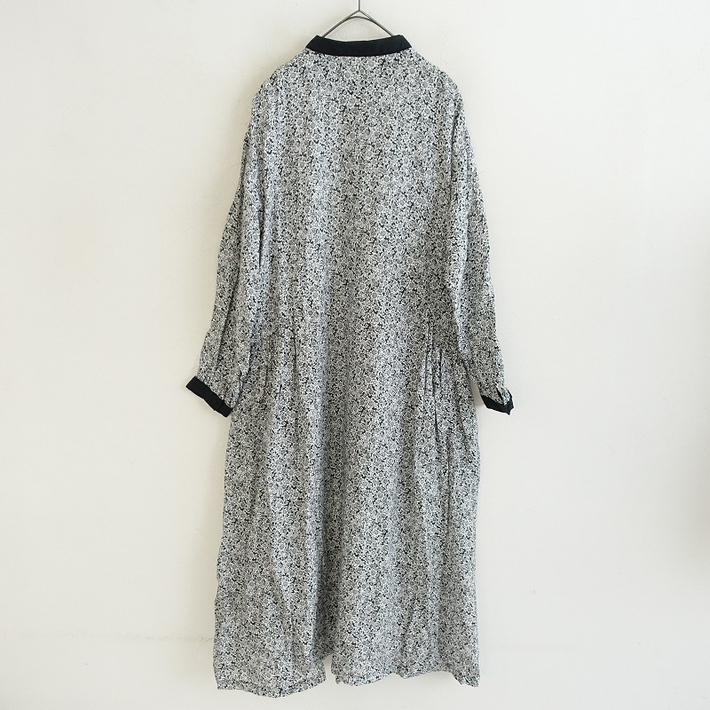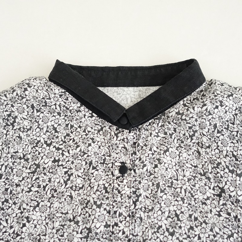 | nest Robeのリネンフラワープリントフロントボタンワンピースです。カラーはブラック、ホワイトのフラワープリントで、リネン地で仕立てられています。フロントはボタンのフルオープン仕様で、ウエストサイドはギャザー入り、衿や袖口の配色がアクセントです。 |