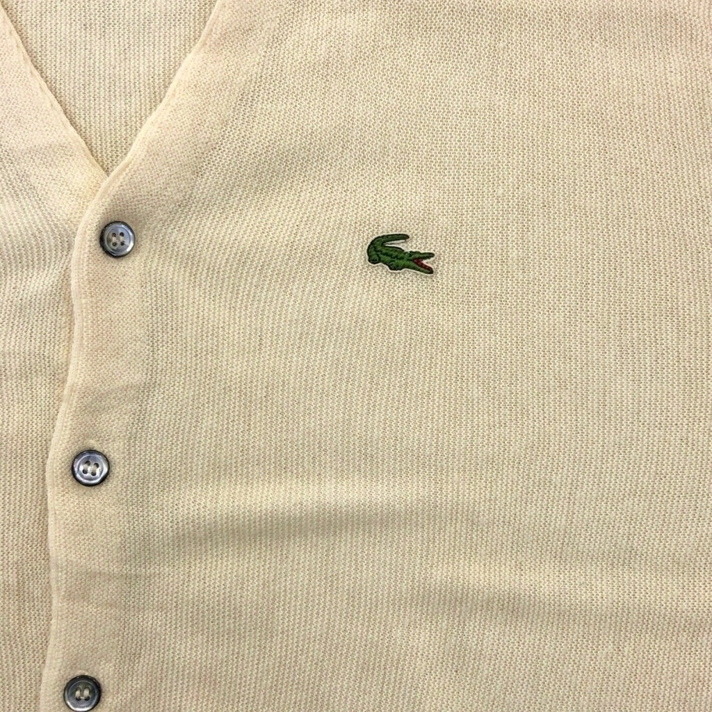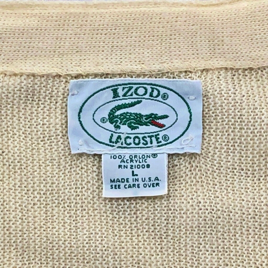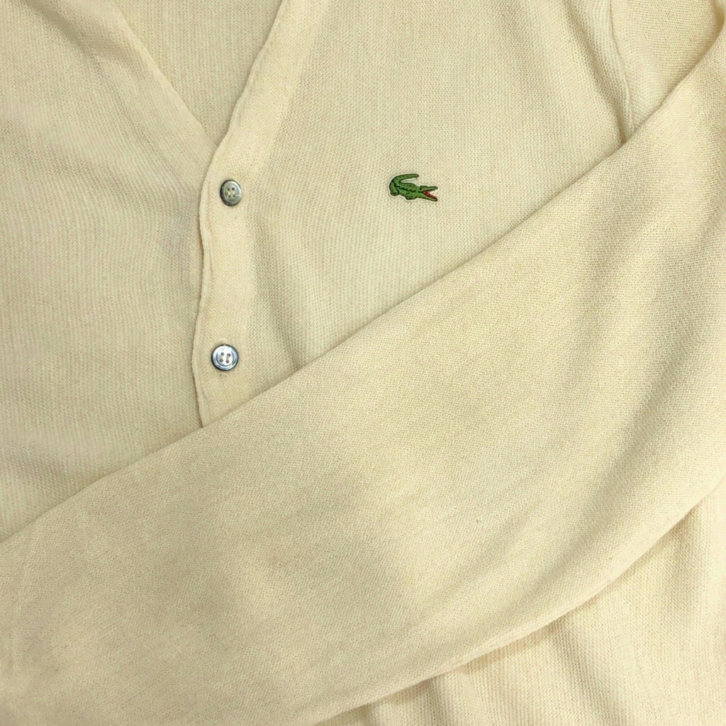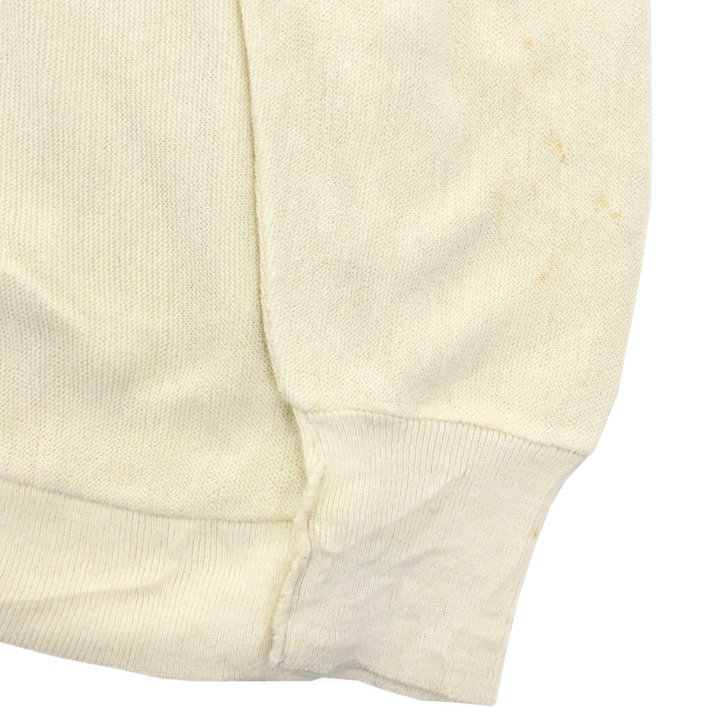 | 【商品管理番号】 V5591 【ブランド】 IZOD LACOSTE/アイゾッド ラコステ 【サイズ】 L 【実寸サイズ】 肩幅:約52cm 着丈:約71cm 身幅:約67cm 袖丈:約77cm 【主な素材】 表地 : アクリル 【色】 アイボリー 【仕様】 生産国 : USA製 80年代 【状態】 汚れ:袖、袖先、腰 キズ:袖 | |||