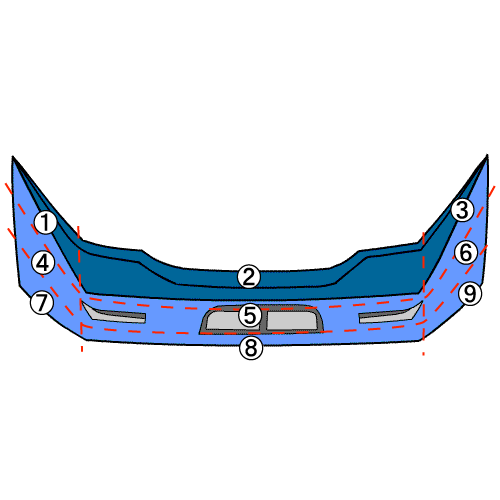 | ・傷表記の数字は車両に付いている向きで見て、進行方向前側左上から1,2,3、中段が4,5,6、下段が7,8,9番と割り振られています。バンパー、ボンネットやトランク等は部品正面からみての9分割になっています。擦り傷やヘコミ表記の後ろにあるA,B,Cは程度を表しており、Aが軽い傷、B,Cになるにつれて強い傷、ヘコミになります。BやCの表記は基本的に修正が必要と判断してください。 ・なお、商品は基本写真に写っている物のみとなります。見えてない部分の付属に関して確認したい場合はお問い合わせください。 |