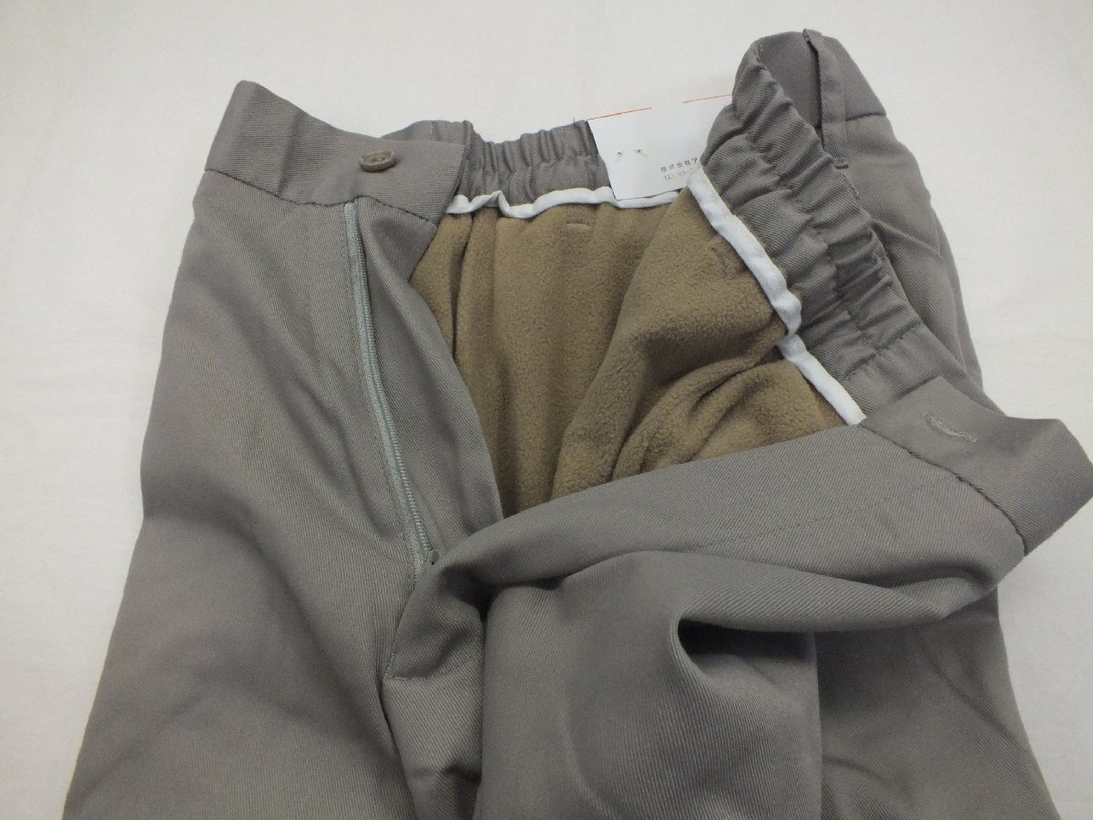 脇シャーリング仕様で窮屈さを感じず履き心地抜群、裏総フリース仕様で暖か!! 品名:脇シャーリング・裏フリース綿パン カラー:①ベージュに近いグレー ポケット:両脇2か所、後ろ1か所 サイズ:M(ウエスト73㎝~79㎝)股下65㎝ 表地:ポリエステル80/綿20 シーズン:秋冬 縫製:中国 詳細寸法 ウエスト73㎝~79㎝/ヒップ108cm/股上28㎝/股下65㎝ 注意)後ろポケットはフラップ付きですがフエイクです。 | ||||