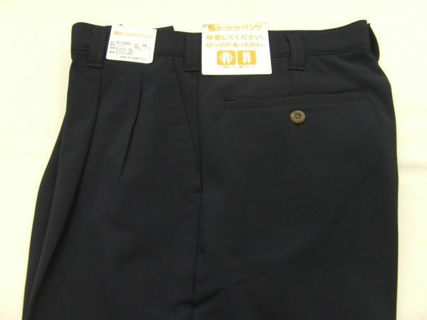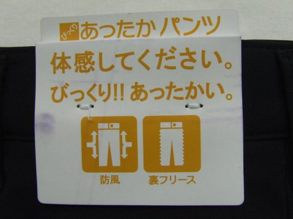 ”びっくり!! あったかい” 2枚の生地を貼り合わせたボンディング素材で、裏側がフリースになっていてとても暖かいカジュアルパンツです!また、風を通さない防風素材です。素材はかなり収縮する「ストレッチ」素材です。 商品名:ボンディング裏フリース防寒ツータッグスラックス 表素材:ポリエステル94/ポリウレタン6 裏素材:ポリエステル100% カラー:ネービー サイズ:79cm 希望小売価格:6,372円(税込み) 縫製:made in china 詳細寸法 ウエスト79cm(股上27.5cm、ヒップ107.0cm、ワタリ巾34.0cm、股下80) ウエスト82cm(股上28.0cm、ヒップ109.0cm、ワタリ巾34.5cm、股下80) ウエスト85cm(股上28.0cm、ヒップ111.0cm、ワタリ巾35.1cm、股下80) ウエスト88cm(股上28.5cm、ヒップ113.0cm、ワタリ巾35.6cm、股下81) ウエスト91cm(股上28.5cm、ヒップ115.0cm、ワタリ巾36.2cm、股下81) | ||||