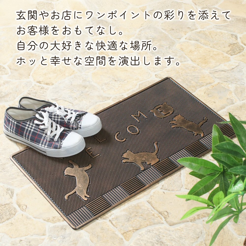 | ヴィンテージな雰囲気漂う玄関マット。 水でサッと洗えるからお手入れラクラク♪ \デザイン:ネコでのお届けです/ |